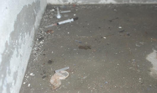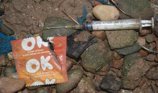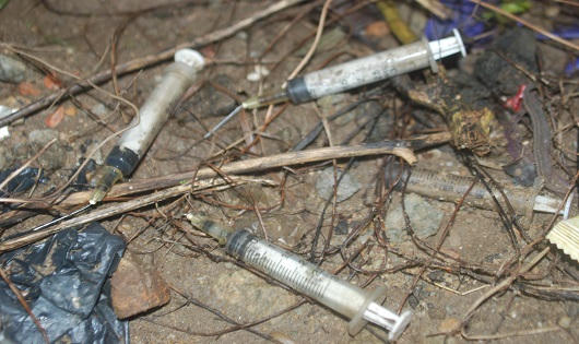 "Bãi chiến trường" mà các con nghiện và hoạt động mại dâm để lại sau mỗi lần tụ họp, “mua bán” là hàng trăm kim tiêm dính đầy máu lẫn lộn với bao cao su vừa qua sử dụng, một cảnh tượng khiến ai nhìn thấy cũng phải khiếp sợ.