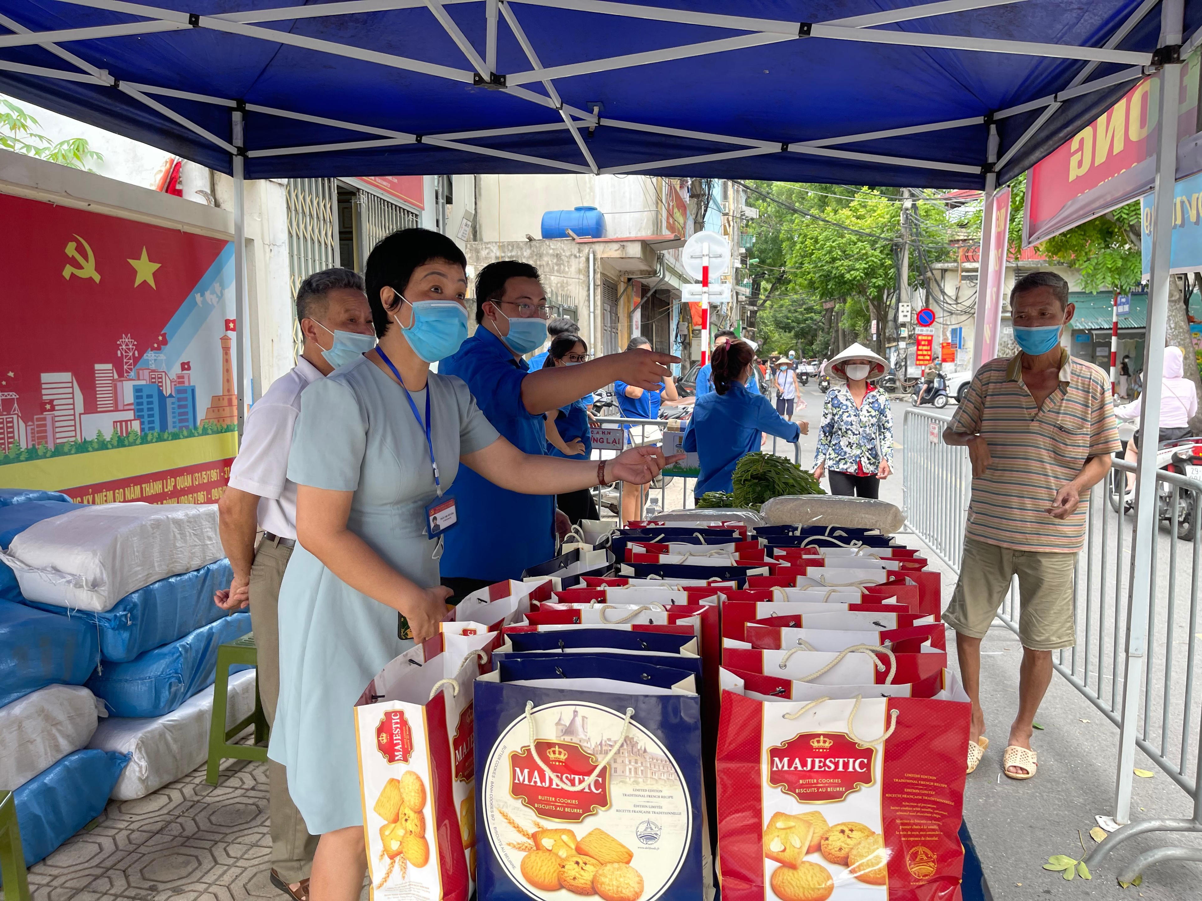 Với quyết tâm “Không để người dân nào khó khăn, thiếu đói” mà không được quan tâm hỗ trợ, từ sáng 14/8 Ủy ban MTTQ quận Ba Đình đã phối hợp với Ban chỉ huy Quân sự quận Ba Đình tổ chức triển khai chương trình “Chợ 0 đồng” trao khoảng 1.000 suất quà trong 3 ngày, để hỗ trợ người dân, người lao động trên địa bàn phường Phúc Xá, quận Ba Đình.