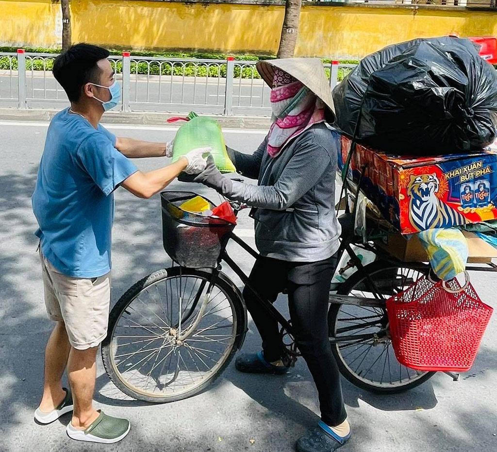 Anh Công tặng suất ăn và phần quà đi cùng cho người khó khăn. Ảnh Thanh Niên. |