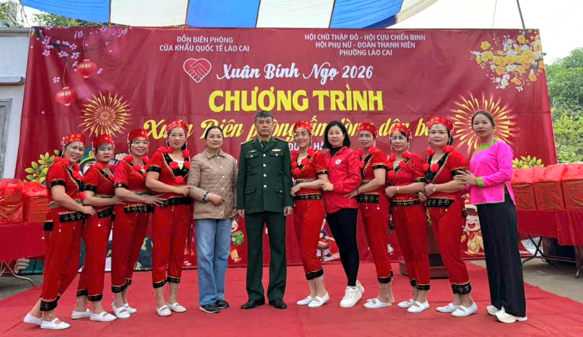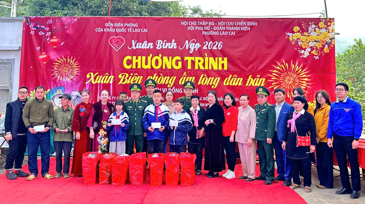 (PLVN) - Ngày 28/1, tại Nhà văn hóa tổ dân phố Nậm Sò, phường Lào Cai, tỉnh Lào Cai, Đồn Biên phòng Cửa khẩu Quốc tế Lào Cai phối hợp với Ủy ban MTTQ Việt Nam và các tổ chức chính trị - xã hội phường Lào Cai tổ chức Chương trình “Xuân Biên phòng ấm lòng dân bản” năm 2026.