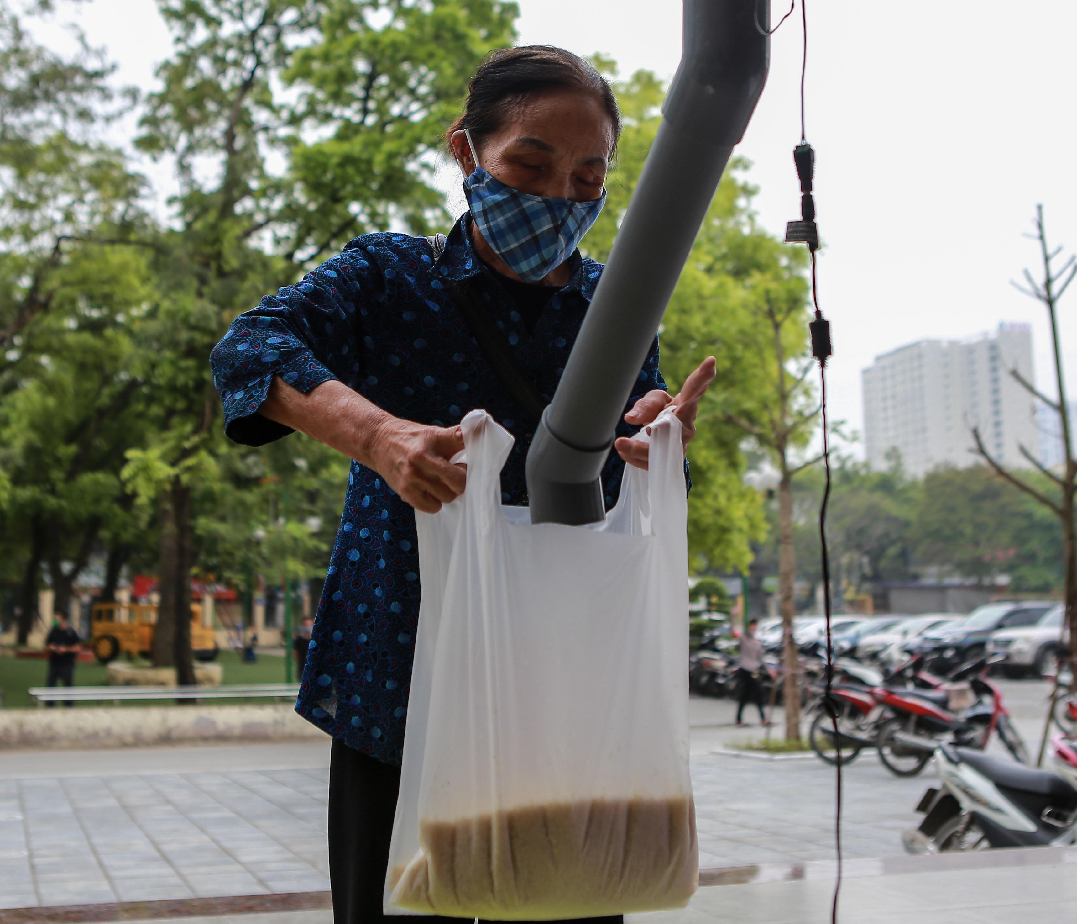 (PLVN) - Sau TP HCM, sáng kiến độc đáo cây "ATM nhả gạo" đã có mặt ở Hà Nội. Ngay sau khi biết được thông tin, rất nhiều người dân có hoàn cảnh khó khăn đã đến địa điểm phát gạo để nhận gạo.