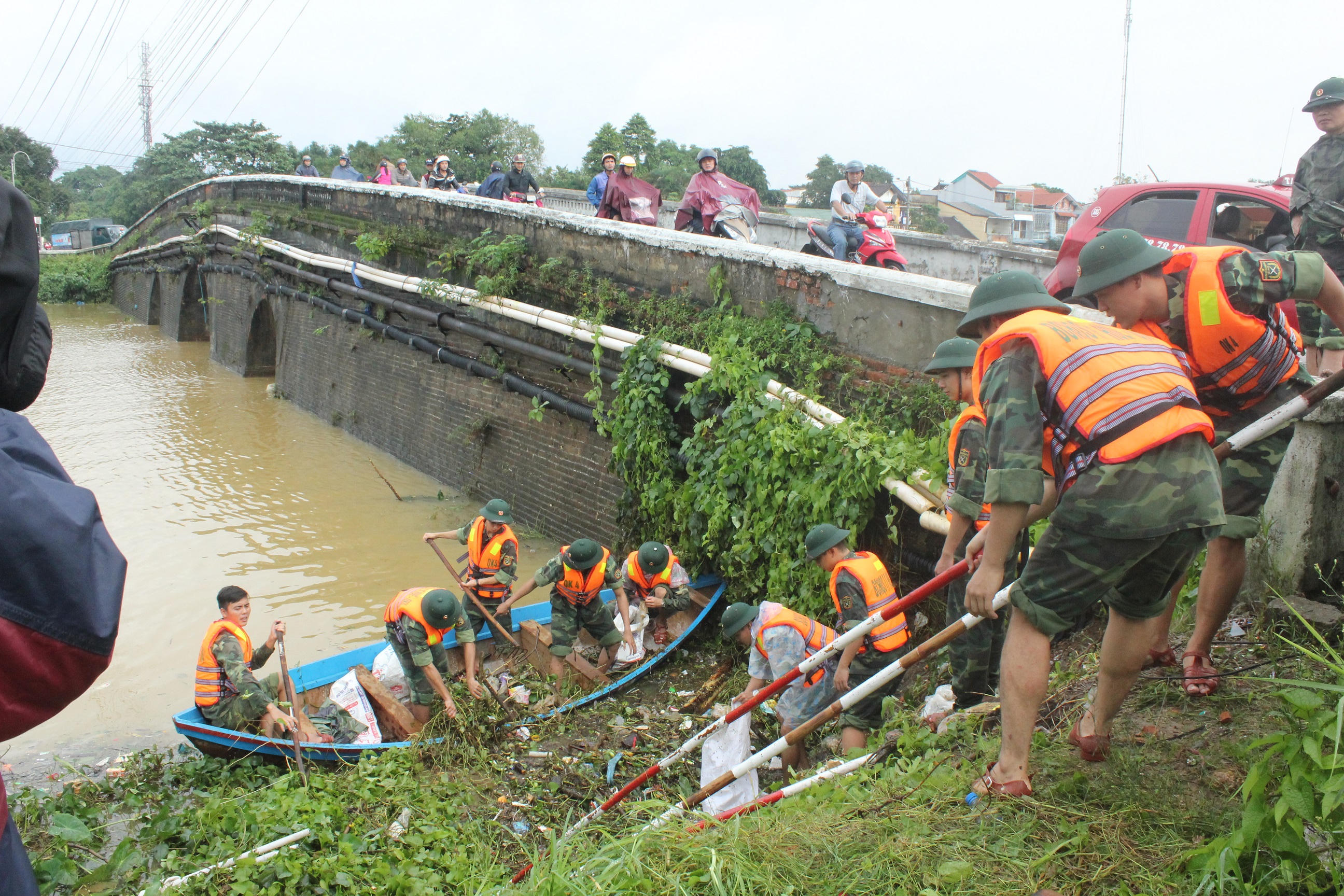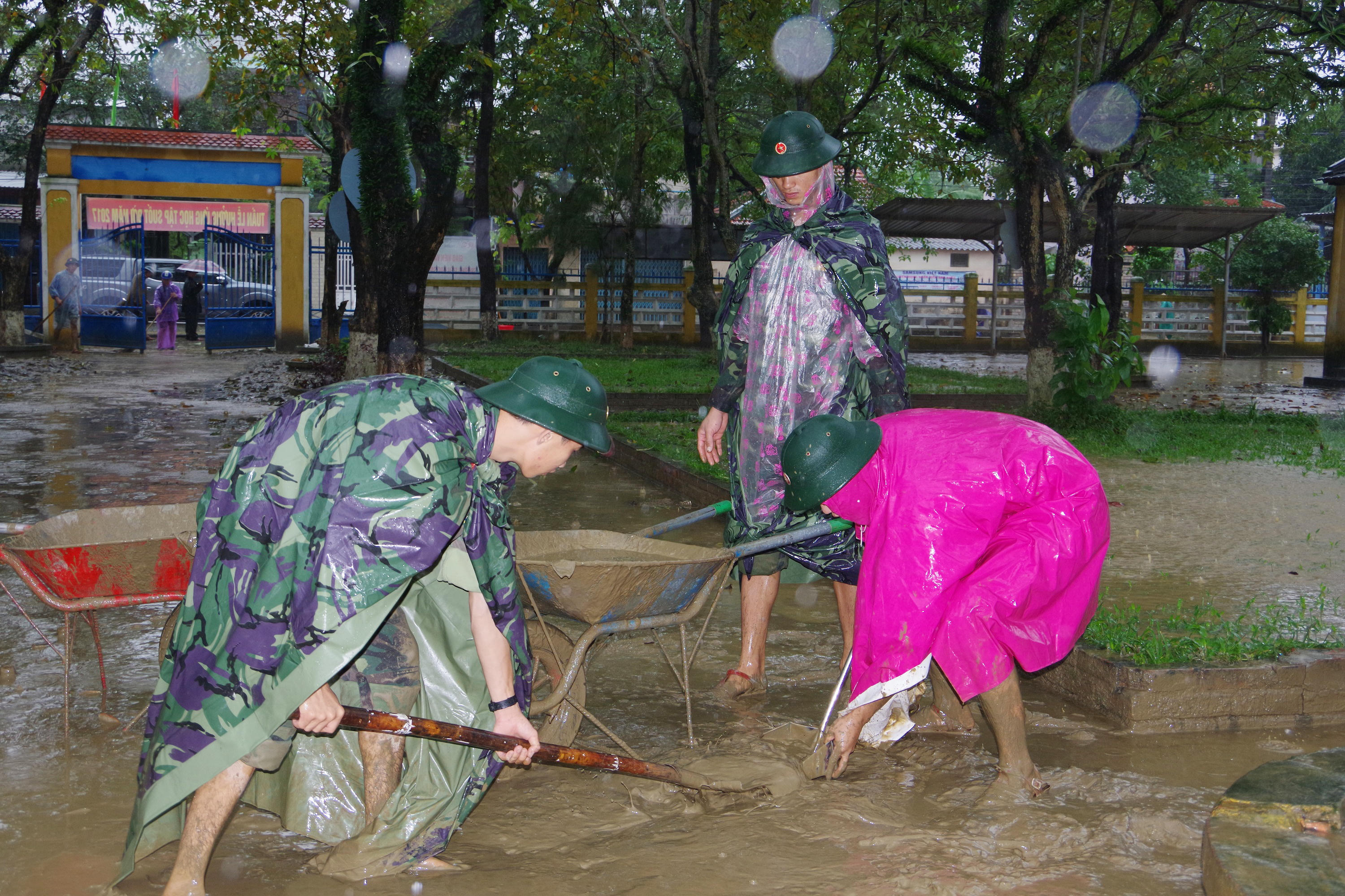 Với phương châm “Nước rút đến đâu, tổng vệ sinh đến đó”, không để dịch bệnh xảy ra. Hiện nay cán bộ, chiến sĩ có mặt tại các vùng sâu, vùng trũng để khẩn trương giúp các xã, phường khôi phục, sữa chữa, dọn dẹp vệ sinh môi trường các tuyến đường, dọc các bờ sông, trường học, trạm xá, khơi thông hệ thống cống rảnh, kênh mương nội đồng... Qua 1 buổi khắc phục hậu quả, với tinh thần và trách nhiệm cao, cán bộ, chiến sĩ đã vệ sinh hàng chục khối đất, bùn, rác.