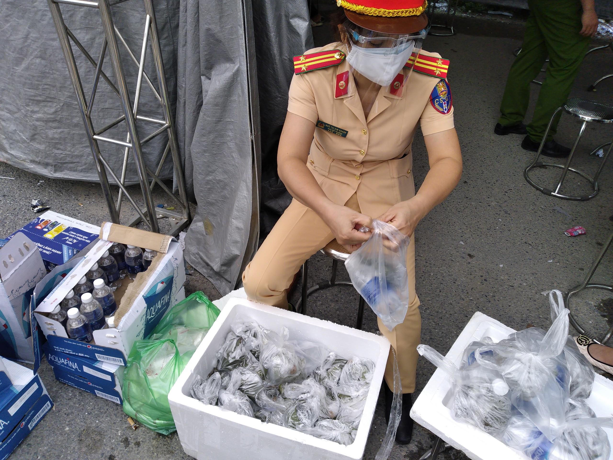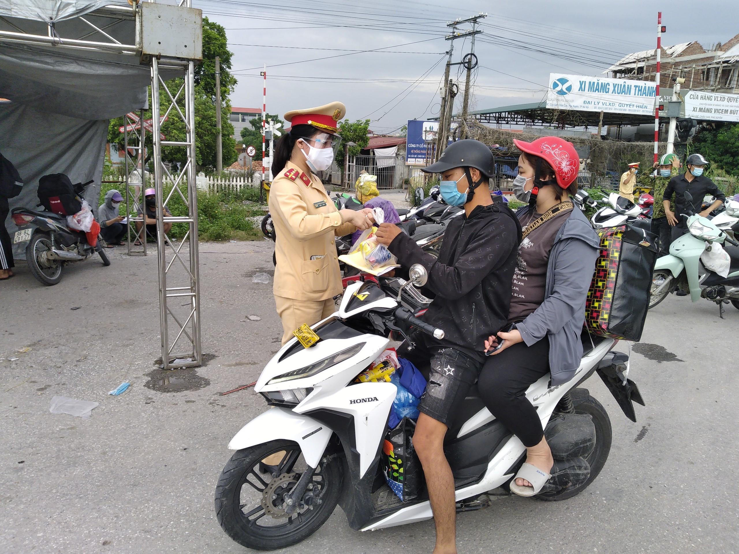 Ấm lòng CSGT Hà Nội tặng đồ ăn cho người dân từ miền Nam qua đường