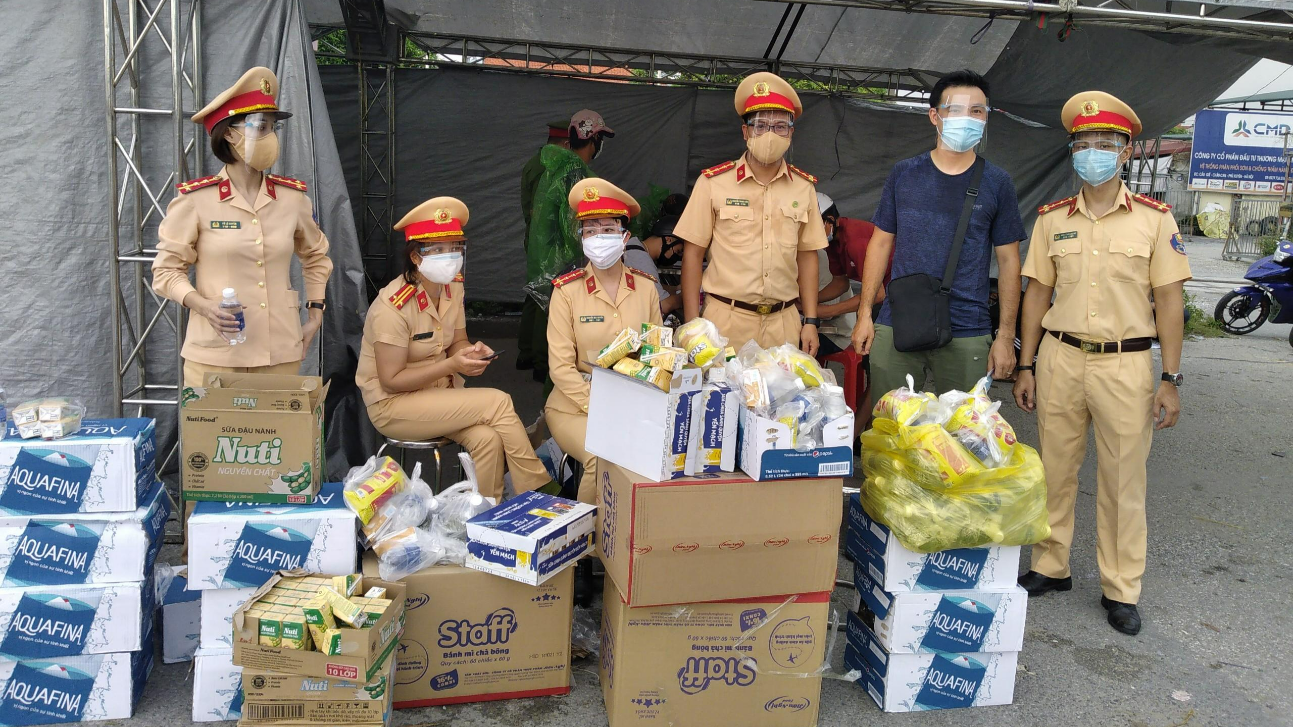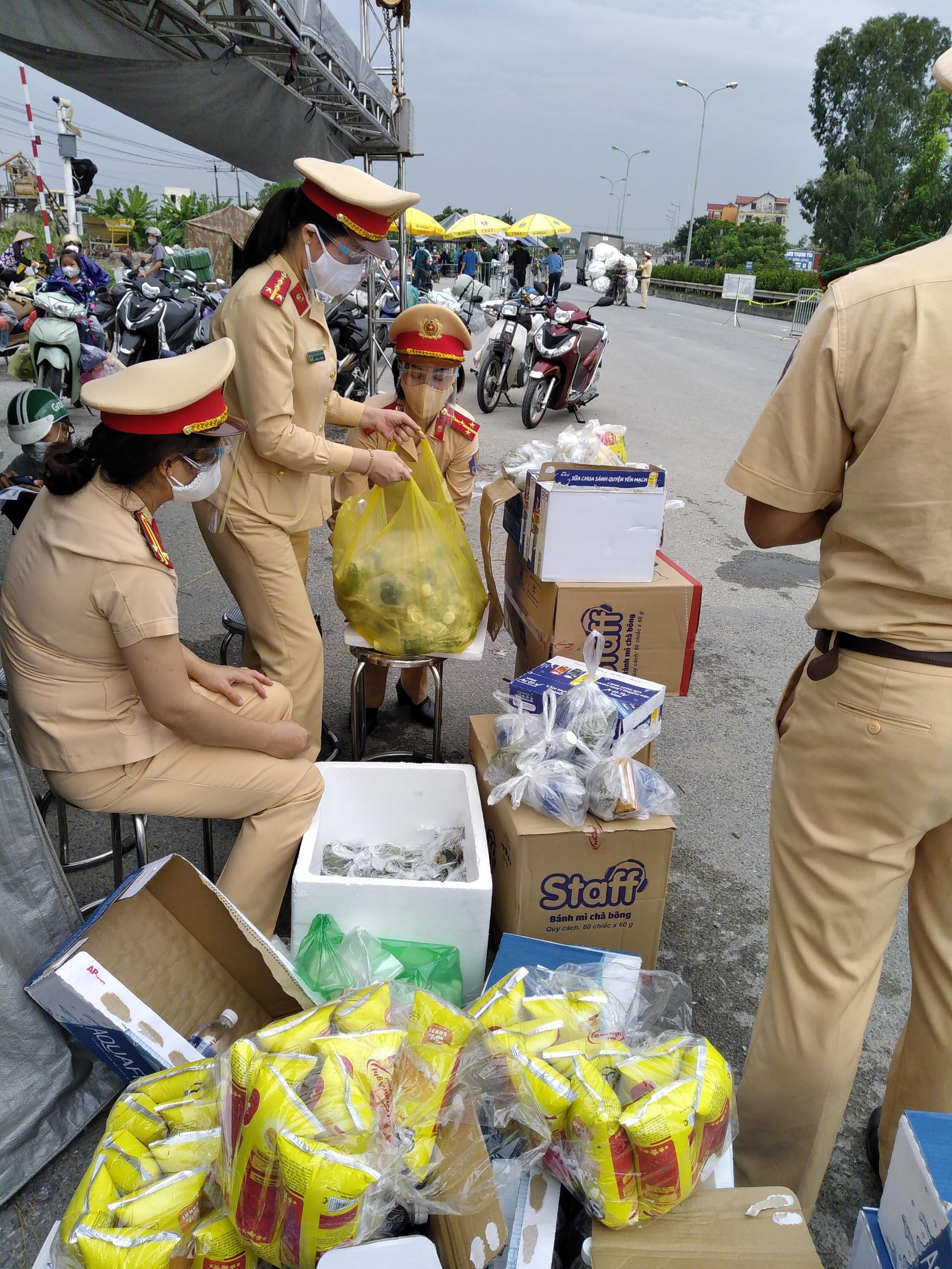 (PLVN) - Cán bộ, chiến sĩ Phòng Cảnh sát giao thông (CSGT) Hà Nội trao tận tay hộp sữa chai nước, gói bánh... cho hàng nghìn người dân di chuyển từ các tỉnh phía Nam về các tỉnh phía Bắc.