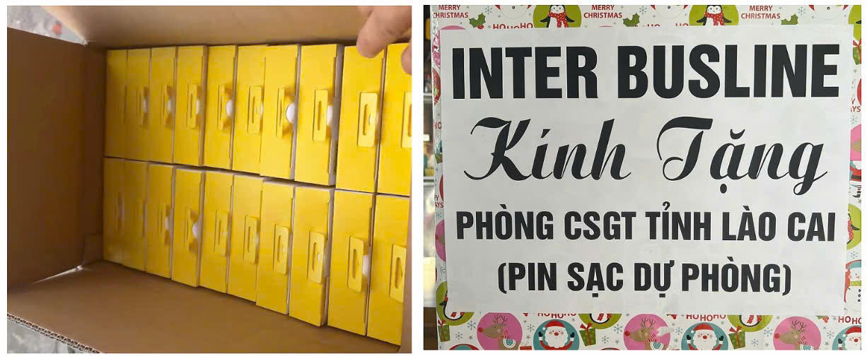 Hãng xe HK Hà Nội tặng pin dự phòng cho phóng viên tác nghiệp vùng lũ. |