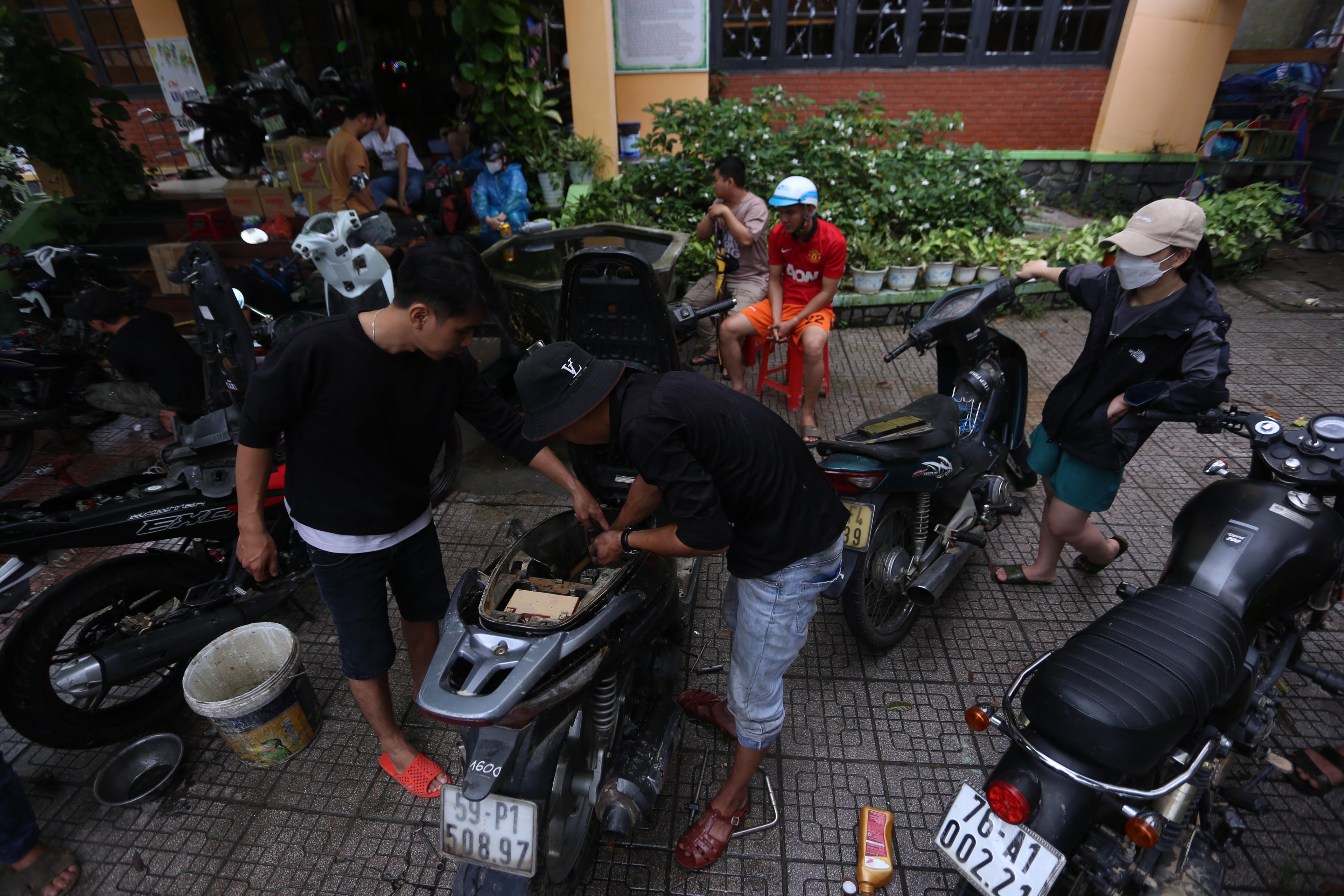 "Các tiệm sửa xe đều từ chối nhận xe vì qua đông. May mắn có các anh ở đây hỗ trợ sửa, không thì em chẳng biết xe đâu đi làm", Thủy cảm kích chia sẻ.
