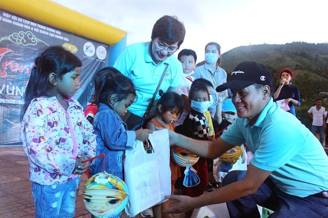 Thiếu nhi xã Thành Sơn, huyện miền núi Khánh Sơn, tỉnh Khánh Hòa nhận quà trung thu.