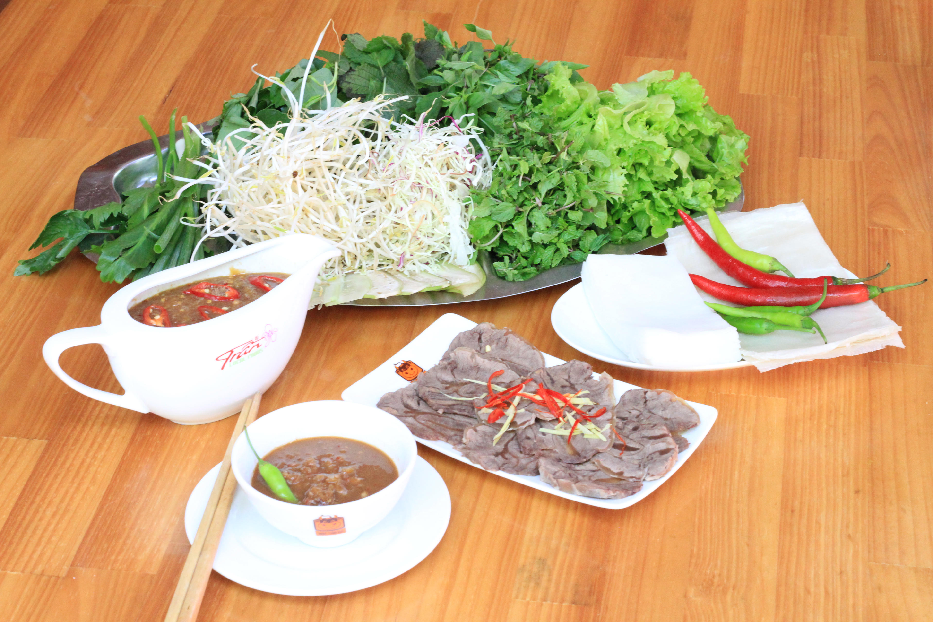 Không chỉ nổi bật với không gian ấn tượng, nhà hàng Ẩm thực Trần còn chăm chút thiết kế một thực đơn đa dạng, mang hương vị xứ Quảng đậm đà nhằm “níu chân” những thực khách khó tính nhất. Từ những món ăn rất đỗi giản dị như bánh bèo, bánh nậm lá dứa, bánh tráng đập, bún mắm mêm…đặc biệt món ăn đặc sản bánh tráng cuốn thịt heo “ở giữa là thịt, hai đầu là da” mang đậm hương vị đặc trưng quê hương giữa lòng phố thị.
