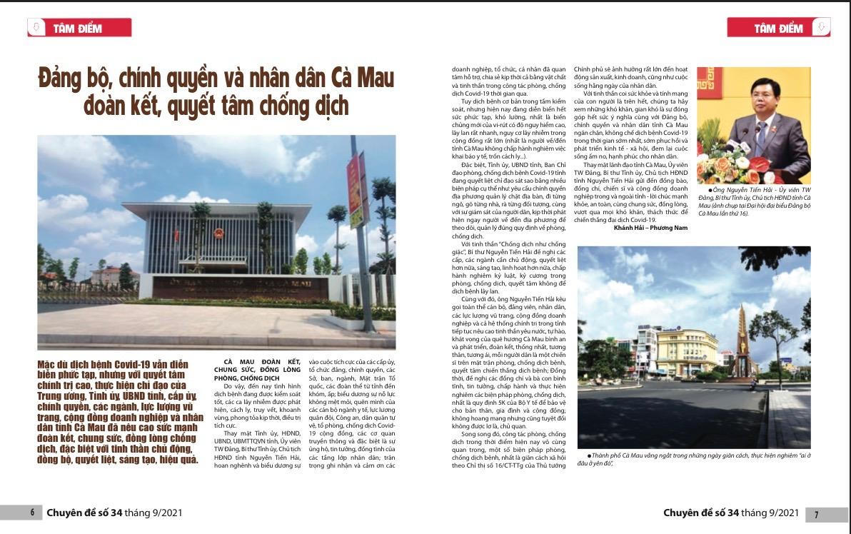 Những ngày này, miền Nam thân yêu của Tổ quốc đang trong giai đoạn gian nan chống “giặc Covid-19”, tại vùng Đất phương Nam dịch bệnh cũng diễn biến phức tạp, khó lường. Hãy cùng chia sẻ quyết tâm với Đảng bộ và nhân dân tỉnh Cà Mau đoàn kết, đồng lòng chiến thắng dịch bệnh; chia sẻ những khó khăn vất vả của nơi tuyến đầu chống dịch của Lực lượng Bộ đội Biên phòng các tỉnh Kiên Giang, Bạc Liêu; tự hào với thành tựu và triển vọng 65 năm xây dựng, trưởng thành của Lực lượng Cảnh sát kinh tế – Công an tỉnh Bạc Liêu...