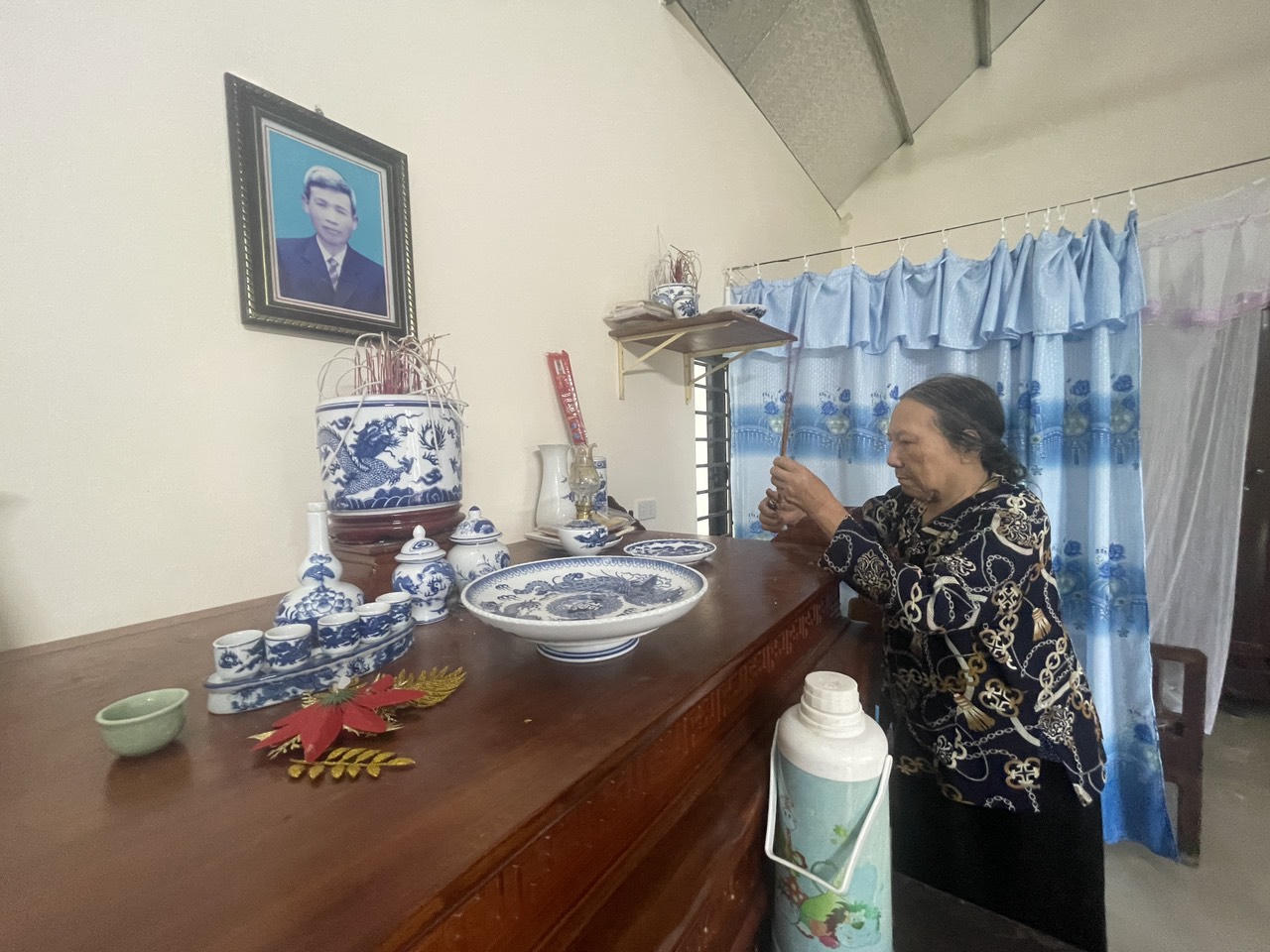 Bà Dịu đã yên tâm khi có ngôi nhà kiên cố, có nơi thờ cúng chồng, không còn phải lo khi mưa, bão. (Ảnh: HG) |
