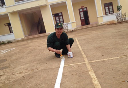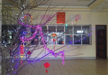 | Sân tập, tường nhà, bồn hoa cây cảnh đều được các cán bộ chiến sĩ tại đồn trang hoàng lại để đón Tết. |