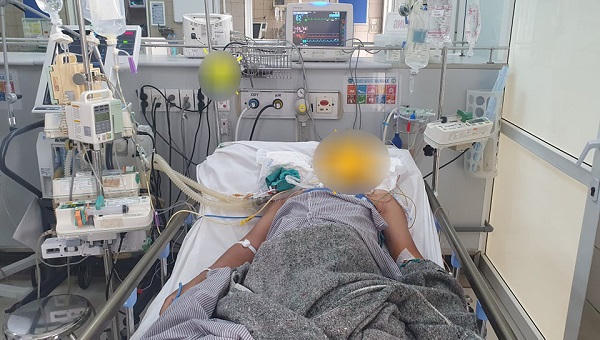 Theo bác sĩ Nguyên, bệnh nhân Đ.V.C được chuyển đến từ tuyến trước trong tình trạng hôn mê, liệt hoàn toàn, dùng thuốc vận mạch, bóp bóng và đặt nội khí quản. Bệnh nhân được chẩn đoán sơ bộ là ngộ độc cua mặt quỷ.