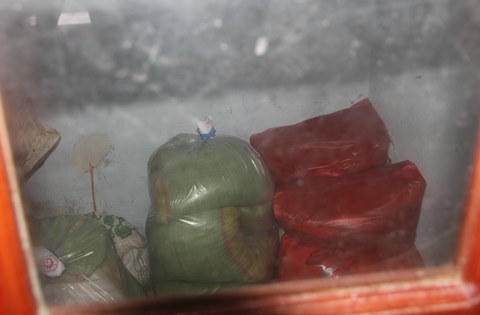 | Số gạo hỗ trợ Tết mà người dân ăn bị ngộ độc đang được niêm phong tại trụ sở UBND xã Phước Trà chờ điều tra, xử lý |