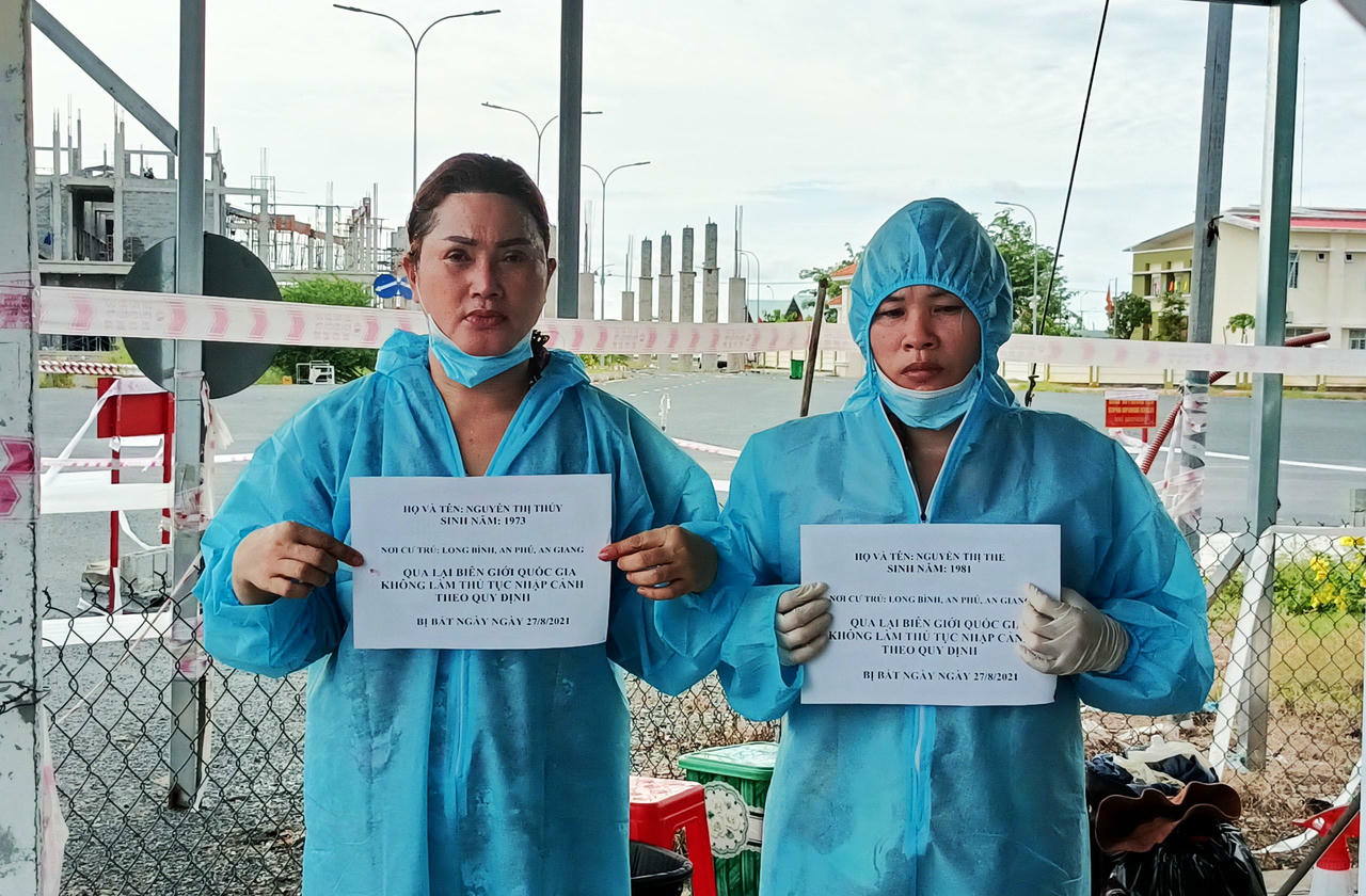 Vào khoảng 10 giờ ngày 27/8, tại khu vực ấp Tân Thạnh, thị trấn Long Bình (huyện An Phú, tỉnh An Giang), Chốt quản lý, bảo vệ biên giới và phòng, chống dịch Covid-19 số 16, Đồn Biên phòng Cửa khẩu Long Bình (BĐBP An Giang) phát hiện 2 đối tượng bơi xuồng nhập cảnh từ Campuchia về Việt Nam gồm: Nguyễn Thị Thúy (SN 1973) và Nguyễn Thị The (SN 1981, cùng trú ấp Tân Thạnh)