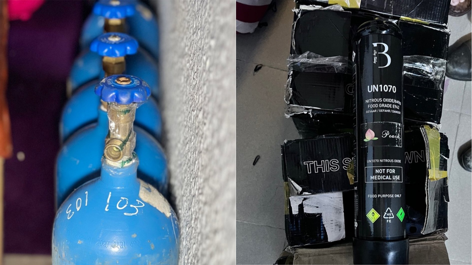 Ngoài ra, Tổ công tác còn phát hiện, tạm giữ trên 50 bình khí bóng cười trong phòng Giao và Vi thuê trọ. Qua test nhanh, cả 6 đối tượng đều dương tính với chất ma tuý.