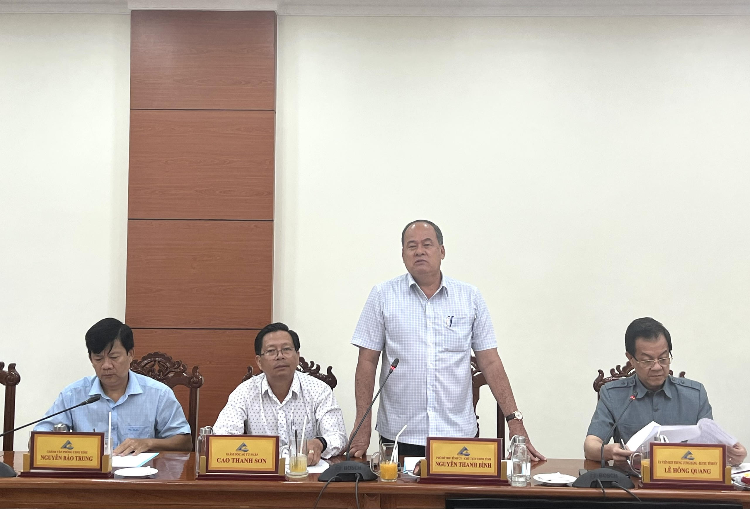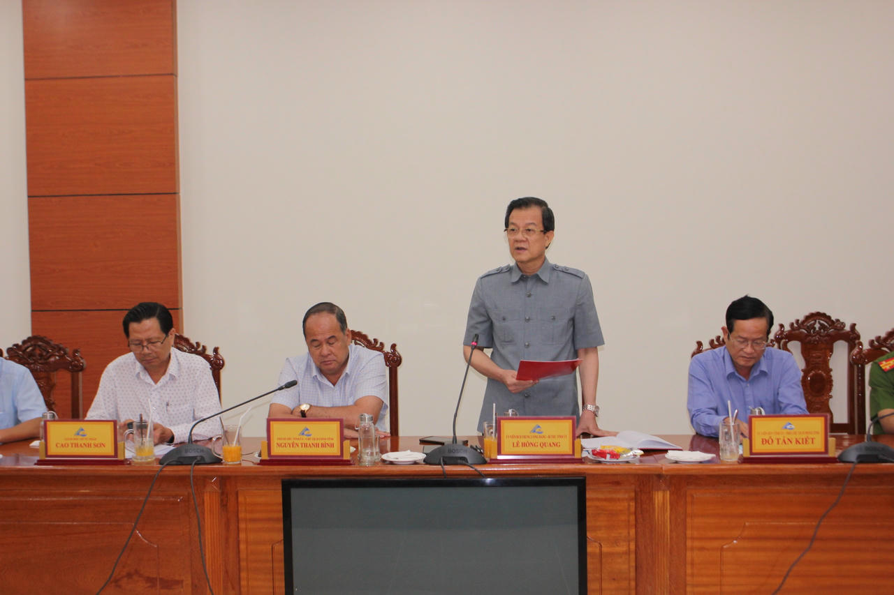 Bí thư Tỉnh ủy An Giang Lê Hồng Quang cảm ơn sự quan tâm, tạo điều kiện của Bộ Tư pháp đối với ngành tư pháp An Giang thời gian qua, đồng thời mong muốn Bộ Tư pháp tiếp tục hỗ trợ, tạo điều kiện cho ngành tư pháp tỉnh thực hiện thắng lợi nhiệm vụ chính trị được giao.