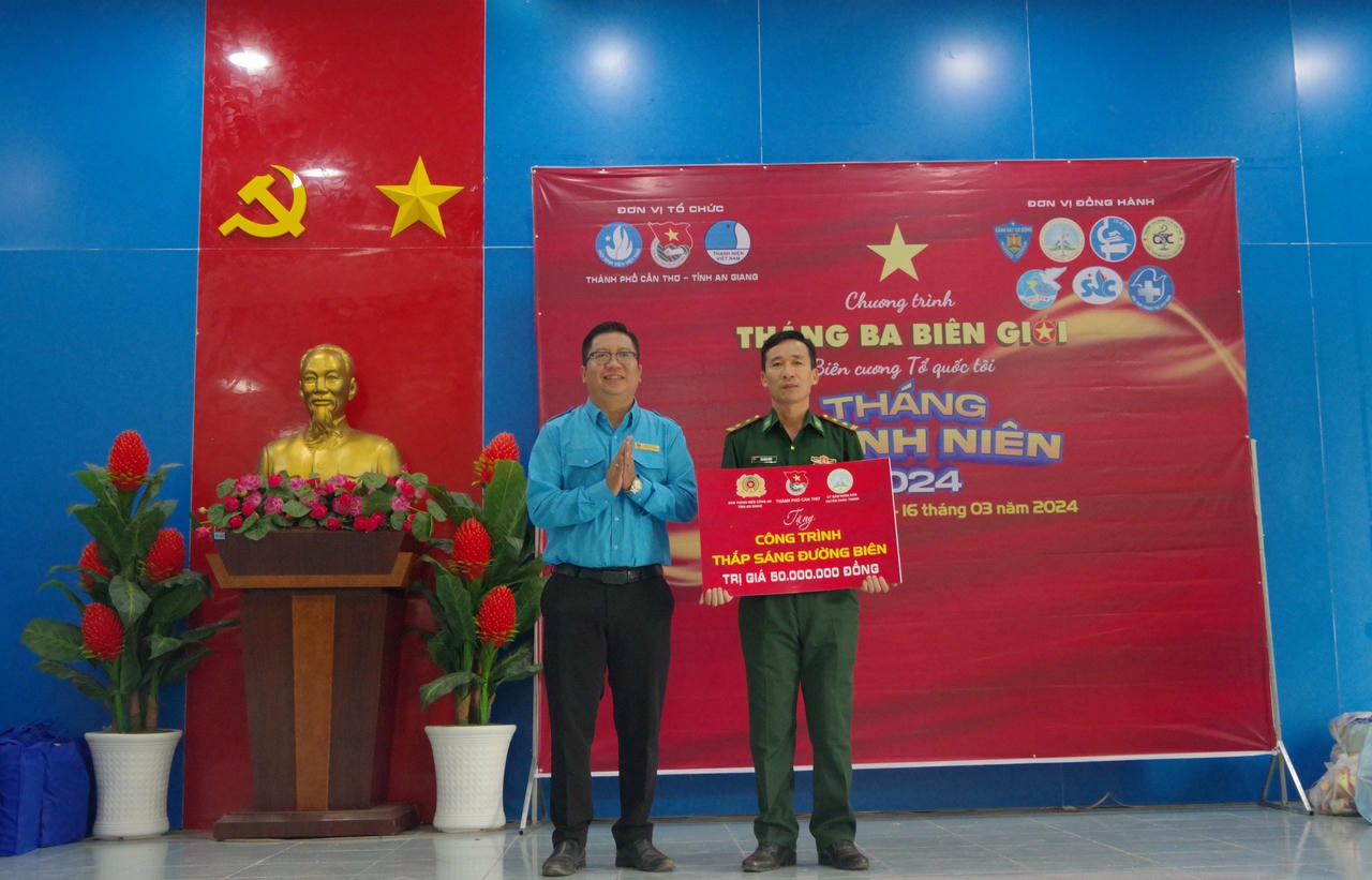 Đẩy mạnh triển khai thực hiện phong trào “Tôi yêu Tổ quốc Tôi” và giúp Nhân dân, cán bộ, chiến sĩ, đang sinh sống, làm nhiệm vụ tại biên giới có thêm điều kiện được chiếu sáng, an tâm công tác, Hội Liên hiệp Thanh niên Việt Nam thành phố Cần Thơ cùng các đơn vị thực hiện công trình “Thắp sáng đường biên” cho Trạm kiểm soát, các chốt và tổ công tác tại biên giới thuộc Đồn Biên phòng Vĩnh Nguơn 20 đèn năng lượng mặt trời với tổng trị giá 50 triệu đồng và tặng 100 lá cờ Tổ quốc cho người dân.