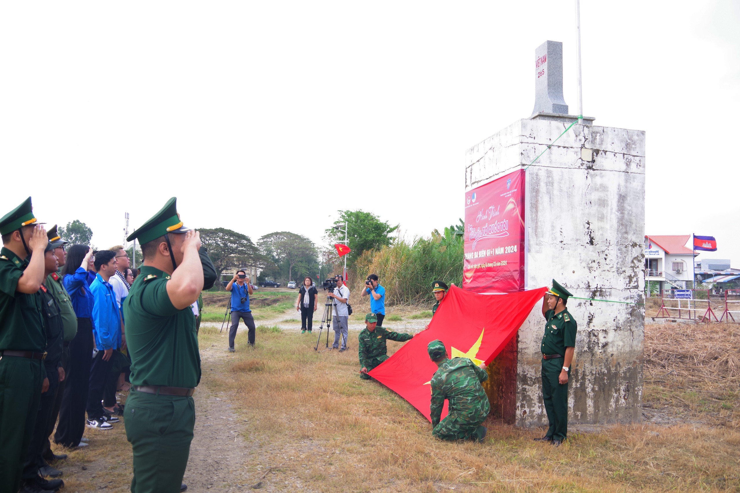 Chào cờ cột mốc 265 thuộc địa bàn quản lý của Đồn biên phòng Vĩnh Nguơn. |