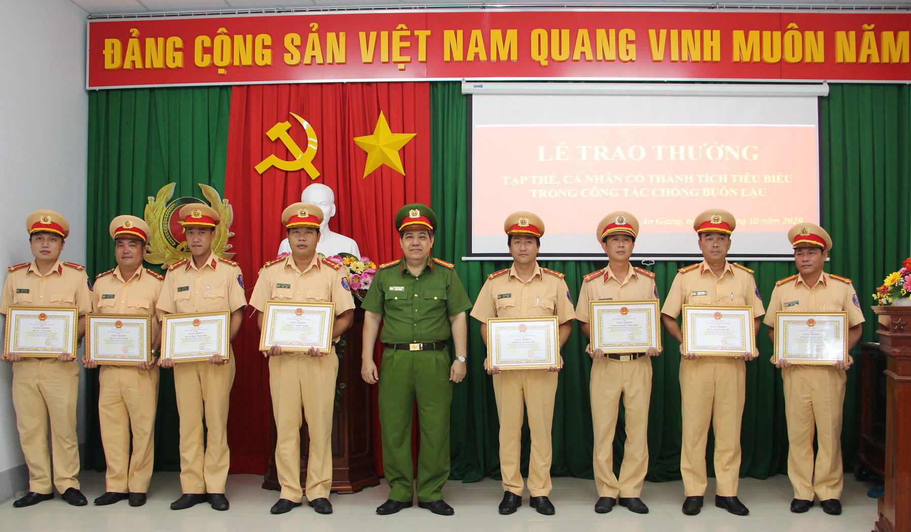 Với thành tích xuất sắc trên, Ban Chỉ đạo 389 tỉnh An Giang tặng bằng khen của UBND tỉnh An Giang cho 1 tập thể, 2 cá nhân và giấy khen cho 8 cá nhân thuộc Phòng Cảnh đường thủy Công an tỉnh An Giang vì đã có thành tích xuất sắc trong công tác chống buôn lậu mặt hàng thuốc lá./.