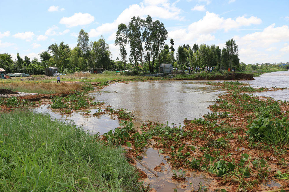 (PLO) - Ngày 10/8, một vụ sạt lở nghiêm trọng đã xảy ra tại khu vực tổ 10, ấp An Thạnh, xã Hòa An, huyện Chợ Mới, tỉnh An Giang làm nhiều bà con lo lắng, hoảng sợ. Khu vực sạt lở dài khoảng 200 mét, ăn sâu vào đất liền 100m, hàng trăm giỏ hoa kiểng mới xuống giống của bà con nông dân đều bị cuốn trôi.