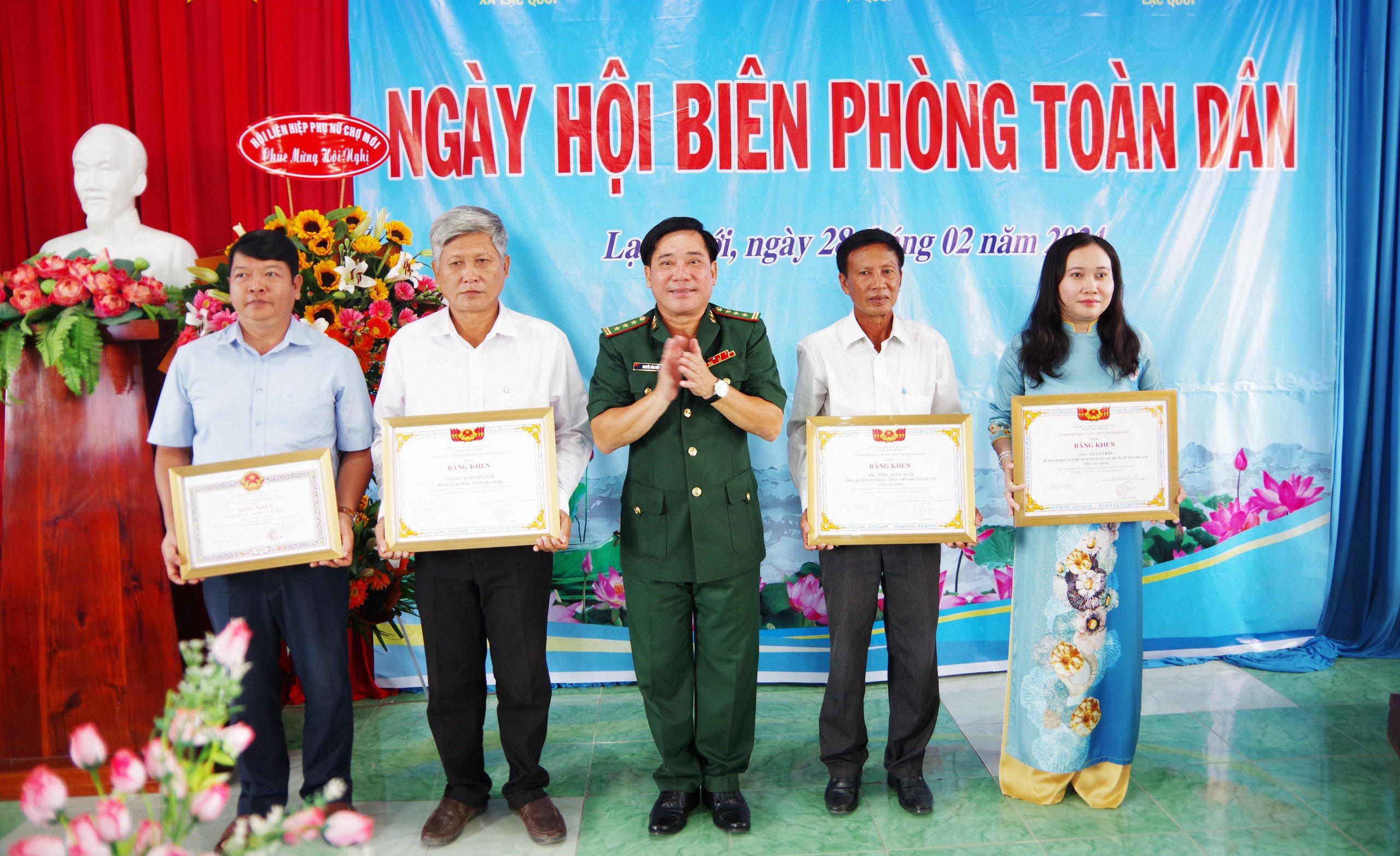 Dịp này, nhiều tập thể, cá nhân được khen thưởng về thành tích tham gia Ngày Biên phòng toàn dân; 40 gia đình chính sách được nhận quà; trao hỗ trợ “Nâng bước em đến trường” cho 2 học sinh.