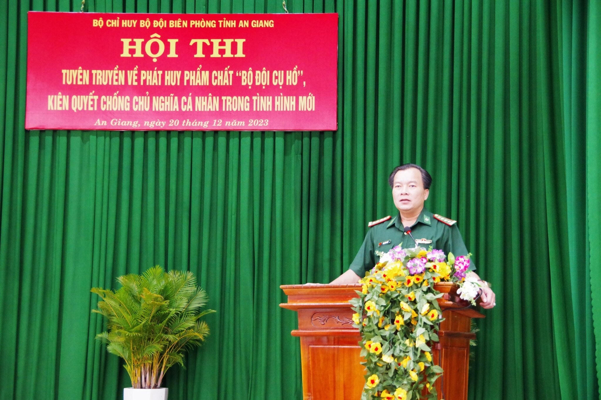 (PLVN) - Ngày 20/12/2023, Bộ chỉ huy Bộ đội Biên phòng (BĐBP) tỉnh An Giang tổ chức Hội thi tuyên truyền về phát huy phẩm chất “Bộ đội Cụ Hồ”, kiên quyết chống chủ nghĩa cá nhân trong tình hình mới.