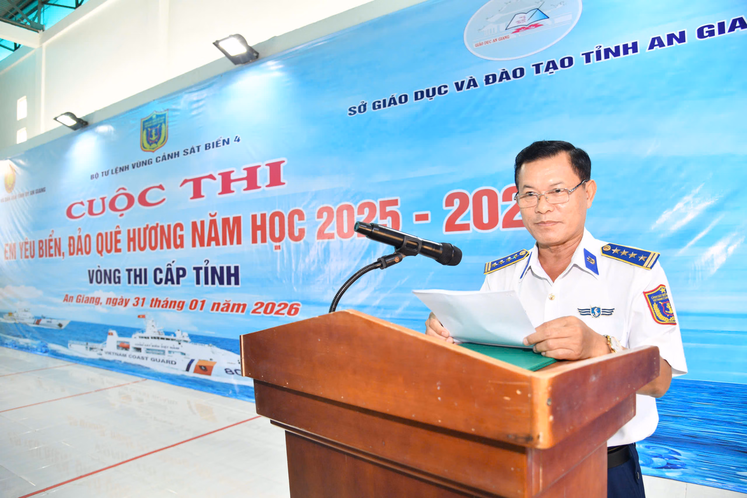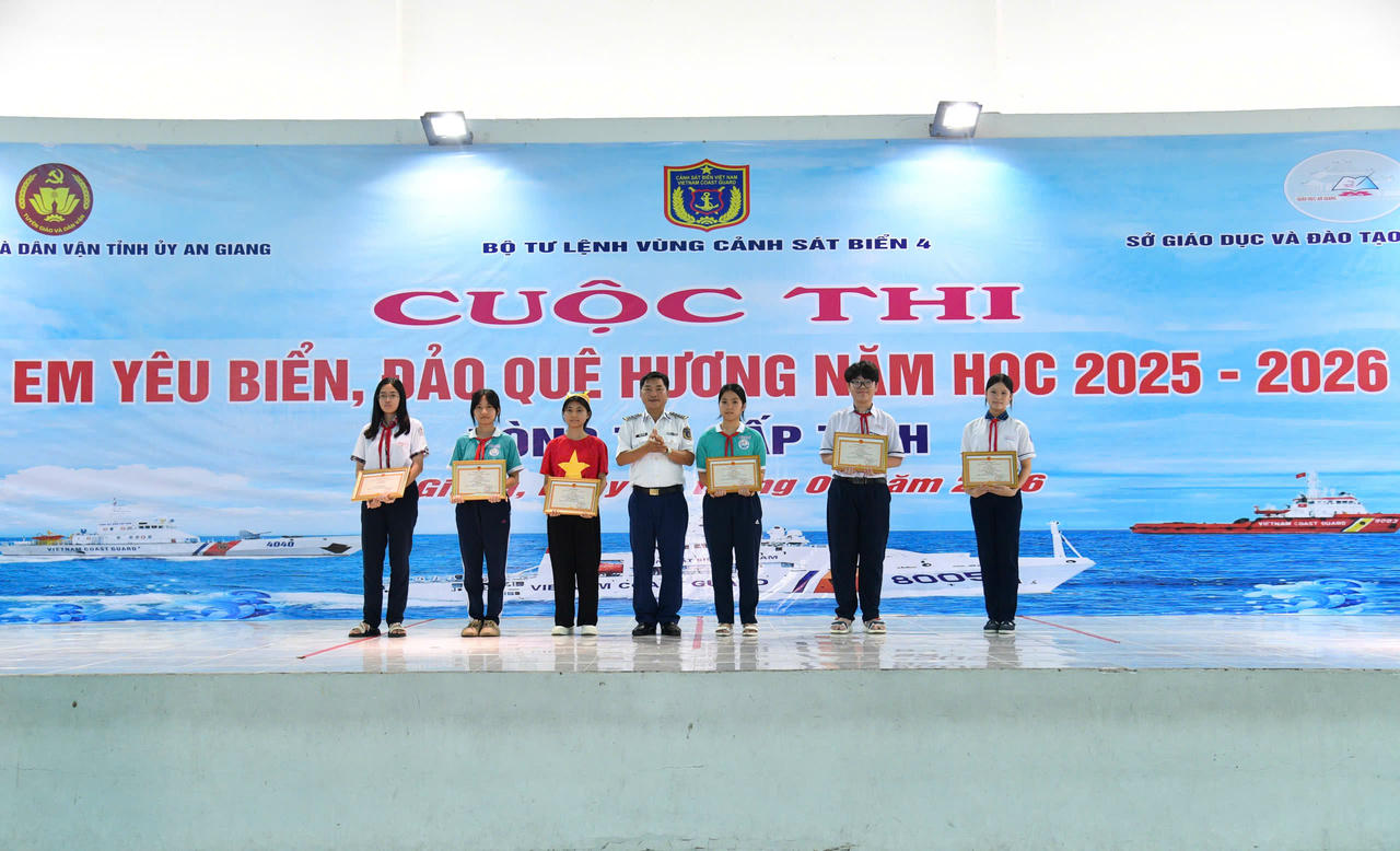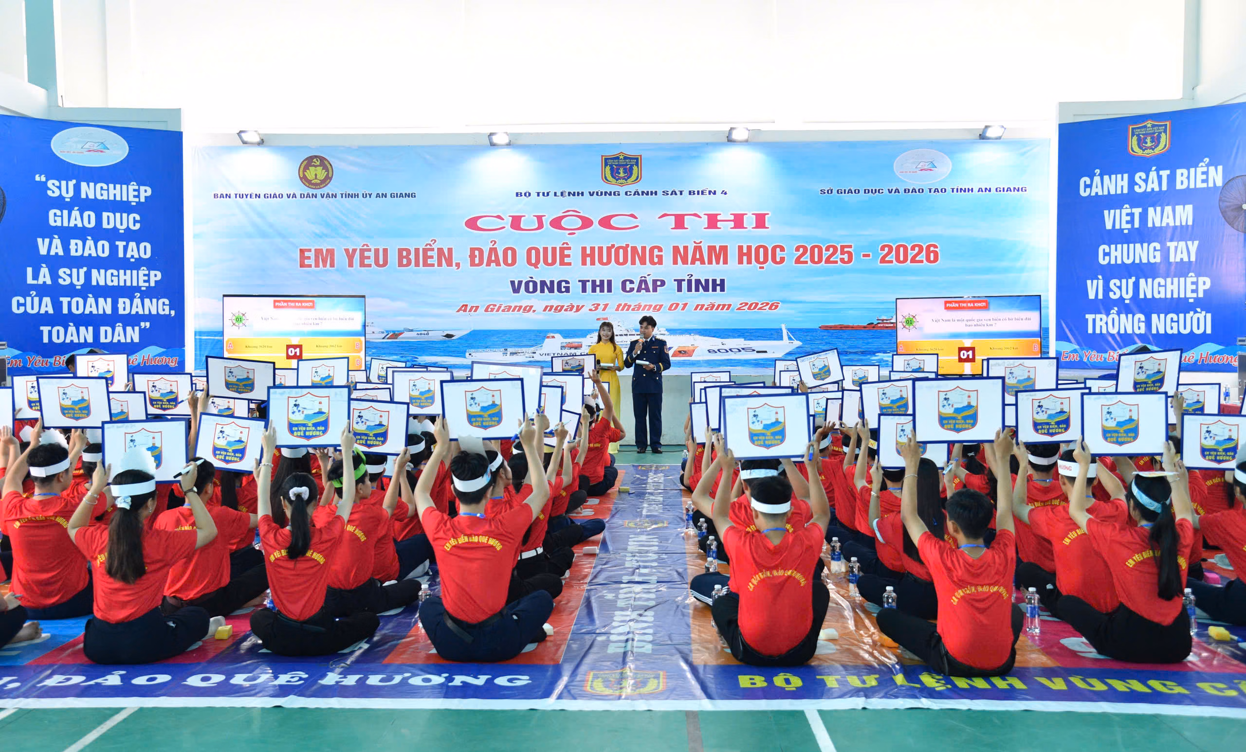 (PLVN) - Ngày 31/1, Bộ Tư lệnh Vùng Cảnh sát biển 4 phối hợp với Ban Tuyên giáo và Dân vận tỉnh ủy, Sở Giáo dục và Đào tạo tỉnh An Giang tổ chức Vòng thi cấp tỉnh Cuộc thi “Em yêu biển, đảo quê hương” năm học 2025 - 2026 dành cho học sinh THCS các xã, phường ven biển trên địa bàn.