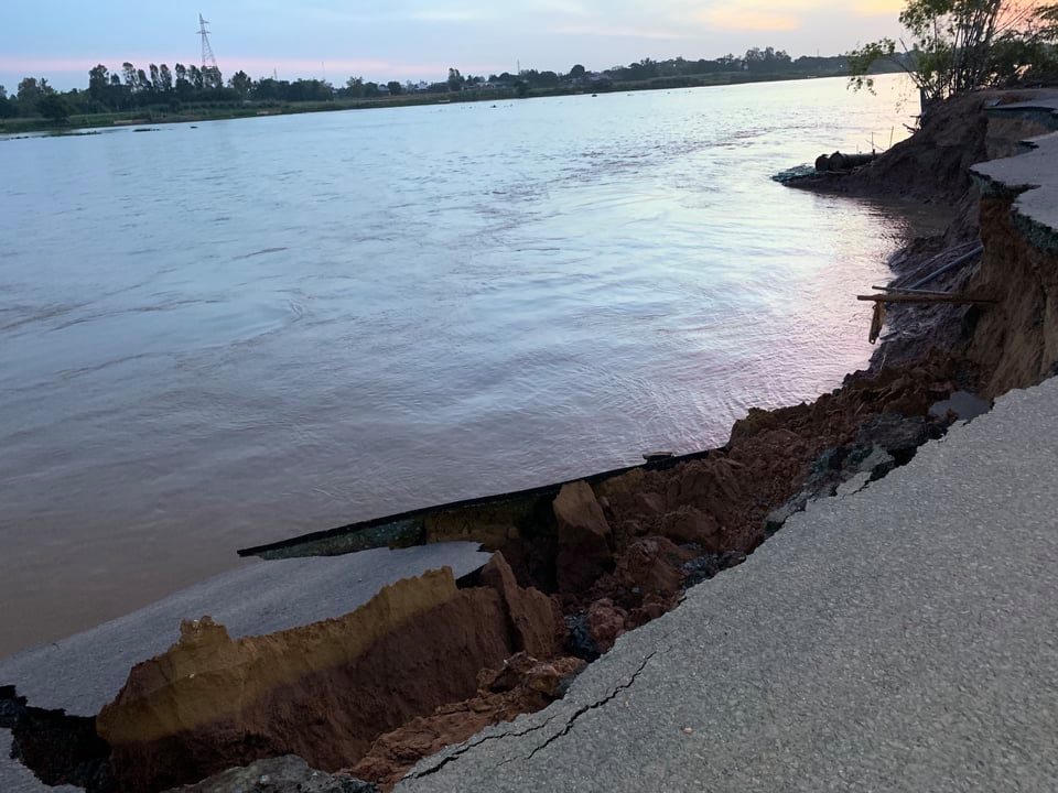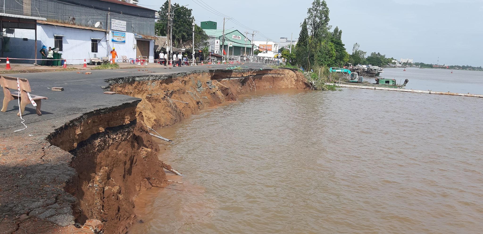 Trước đó, vào ngày 18/8, khi đơn vị thi công thả bao cát xuống sông Hậu cao hơn mặt nước sông khoảng 1m để ổn định đường bờ, gia cố mái taluy thì bất ngờ toàn bộ các bao tải cát bị sụp lún hoàn toàn xuống sông. Không dừng lại ở đó, trên mặt đường còn xuất hiện nhiều vết răn nứt kéo dài hàng chục mét