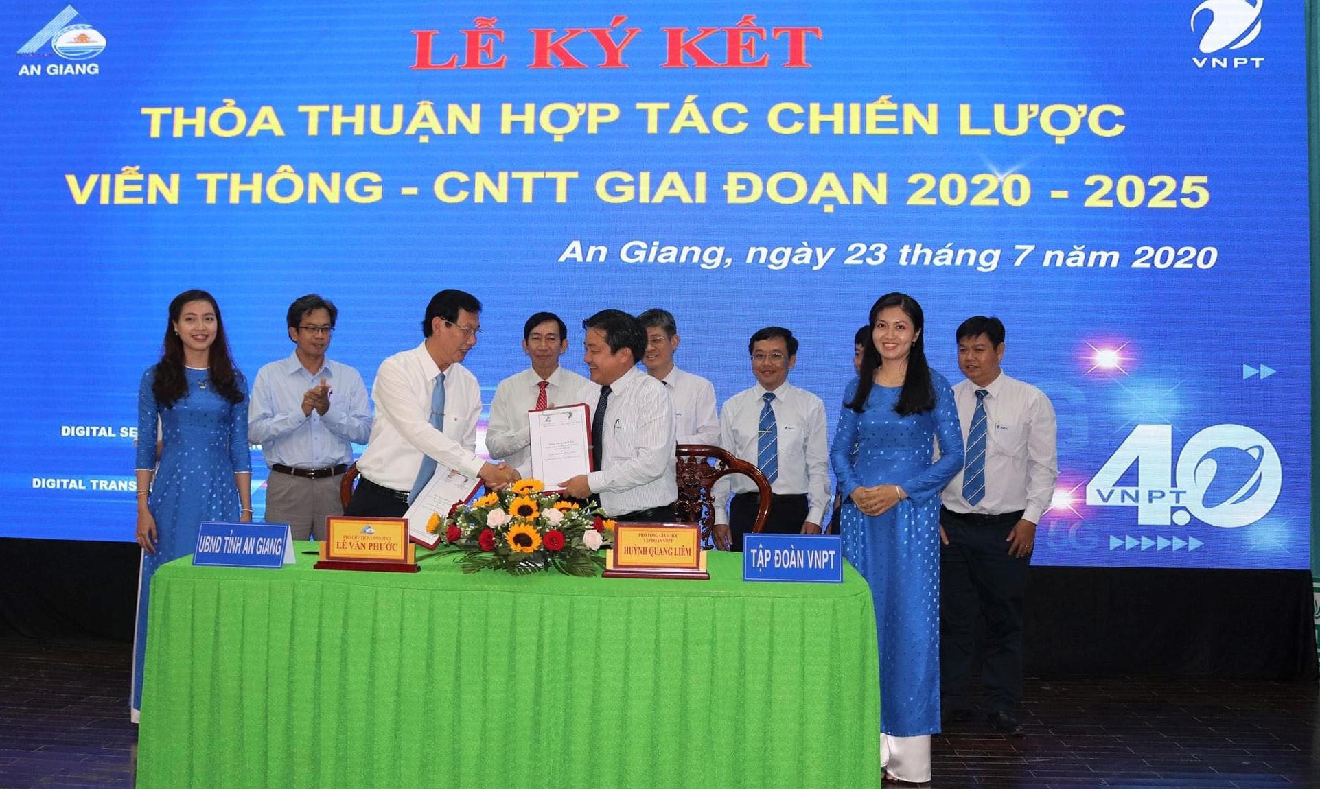 Chiều 23/7, UBND tỉnh An Giang phối hợp với Tập đoàn Bưu chính Viễn thông Việt Nam (VNPT) tổ chức tổng kết 5 năm thỏa thuận hợp tác và ký kết thỏa thuận hợp tác chiến lược viễn thông - công nghệ thông tin giai đoạn 2020-2025.