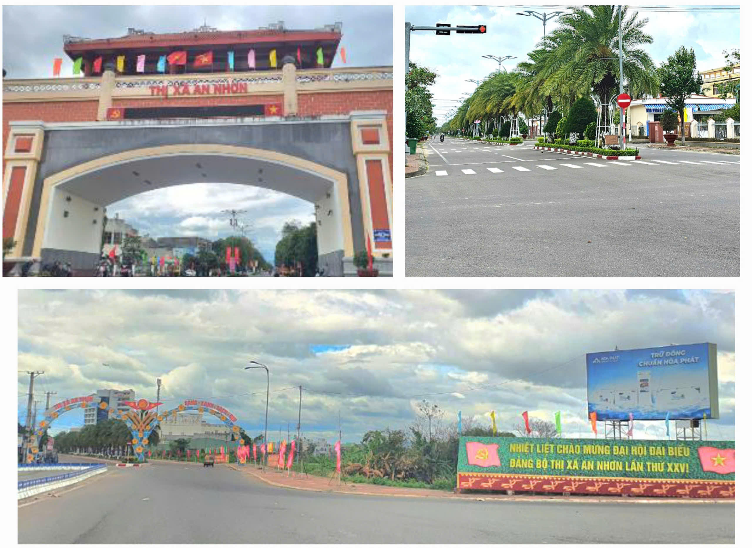 Các công trình chào mừng Đại hội Đảng các cấp gồm: Tuyến đường từ ĐT.636 (Nhơn Khánh) kết nối với đường ĐH.35 đến đường Trường Chinh (Nhơn Hưng); Đường kết nối giao thông hai tuyến ĐT.636 và ĐT.638 (xã Nhơn Khánh và xã Nhơn Lộc); Tuyến đường trục Đông - Tây: Đoạn từ Bến xe mới thị xã đến cầu Mương Đôi và Hòa viên kết hợp với điểm trưng bày cây Mai vàng và các sản phẩm làng nghề truyền thống An Nhơn; Nâng cấp, mở rộng tuyến giao thông kết nối đường trục khu kinh tế với ĐT.631, xã Nhơn Phong; Đường Tôn Thất Tùng nối dài về phía đông.