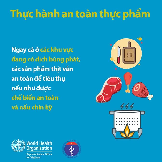 Theo đó, người dân cần thực hiện ăn chín uống sôi, nấu chín kỹ thức ăn từ thịt và trứng. Không sử dụng thịt từ động vật bị ốm hoặc chết bệnh.