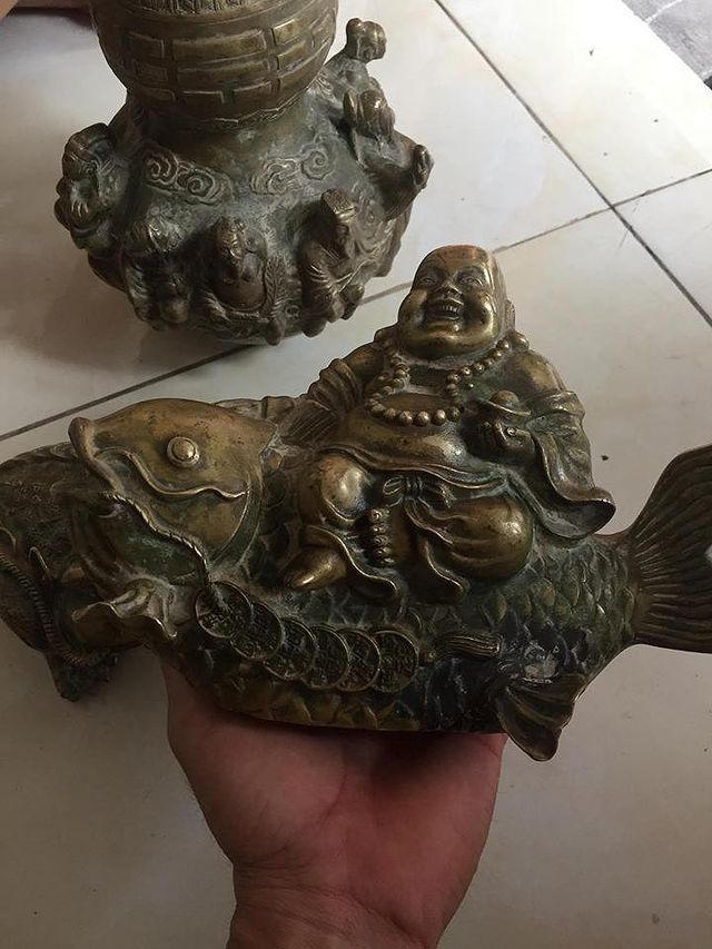 Dò trên các trang mạng về sưu tầm, mua bán cổ vật, chuyện đào được đồ đồng cũng diễn ra hà rầm. Nhiều người khoe đào được từ nhà với cả bộ gồm nhiều món như: hồ lô, con gà, con cóc, Phật Di Lặc… và hầu hết dưới đáy đều khắc chữ Hán. Chủ nhân những món đồ kể trên, hầu hết cho rằng những món đồ này là đồ cổ vì đã dò la, hỏi nhiều người trong giới sưu tầm.