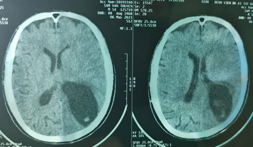 Phim chụp cắt lớp vi tính sọ não trước khi phẫu thuật. |