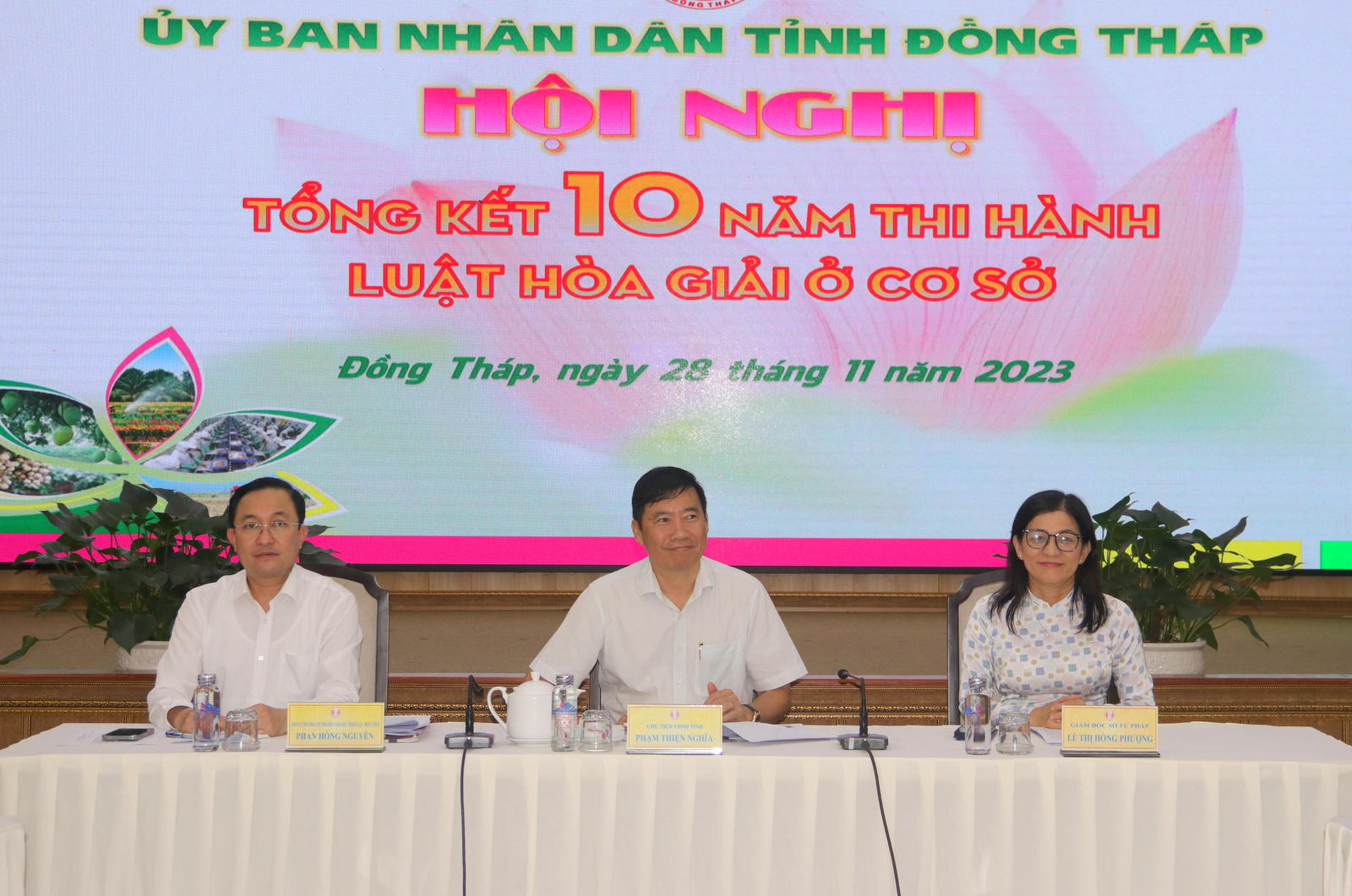 Chiều ngày 28/11, UBND tỉnh Đồng Tháp tổ chức Hội nghị tổng kết 10 năm thi hành Luật Hòa giải ở cơ sở. Tham dự Hội nghị có ông Phan Hồng Nguyên – Phó Cục trưởng Cục Phổ biến, Giáo dục pháp luật (Bộ Tư pháp); Ông Phạm Thiện Nghĩa – Chủ tịch UBND tỉnh Đồng Tháp; Bà Lê Thị Hồng Phượng – Giám đốc Sở Tư pháp tỉnh Đồng Tháp; cùng lãnh đạo các Sở, ban, ngành, đoàn thể tỉnh Đồng Tháp.