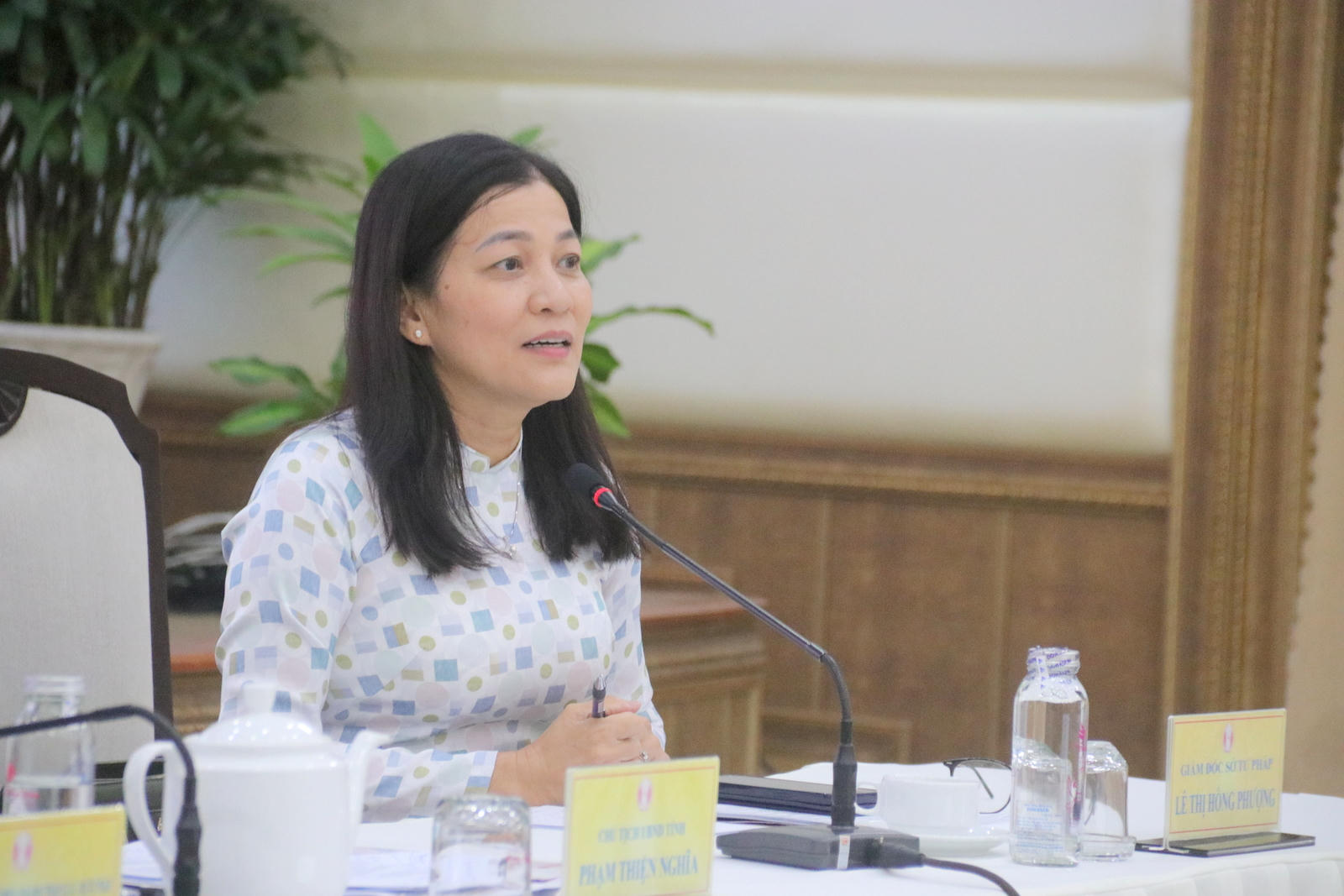 Bà Lê Thị Hồng Phượng - Giám đốc Sở Tư pháp tỉnh Đồng Tháp điều hành phần trao đổi, thảo luận |