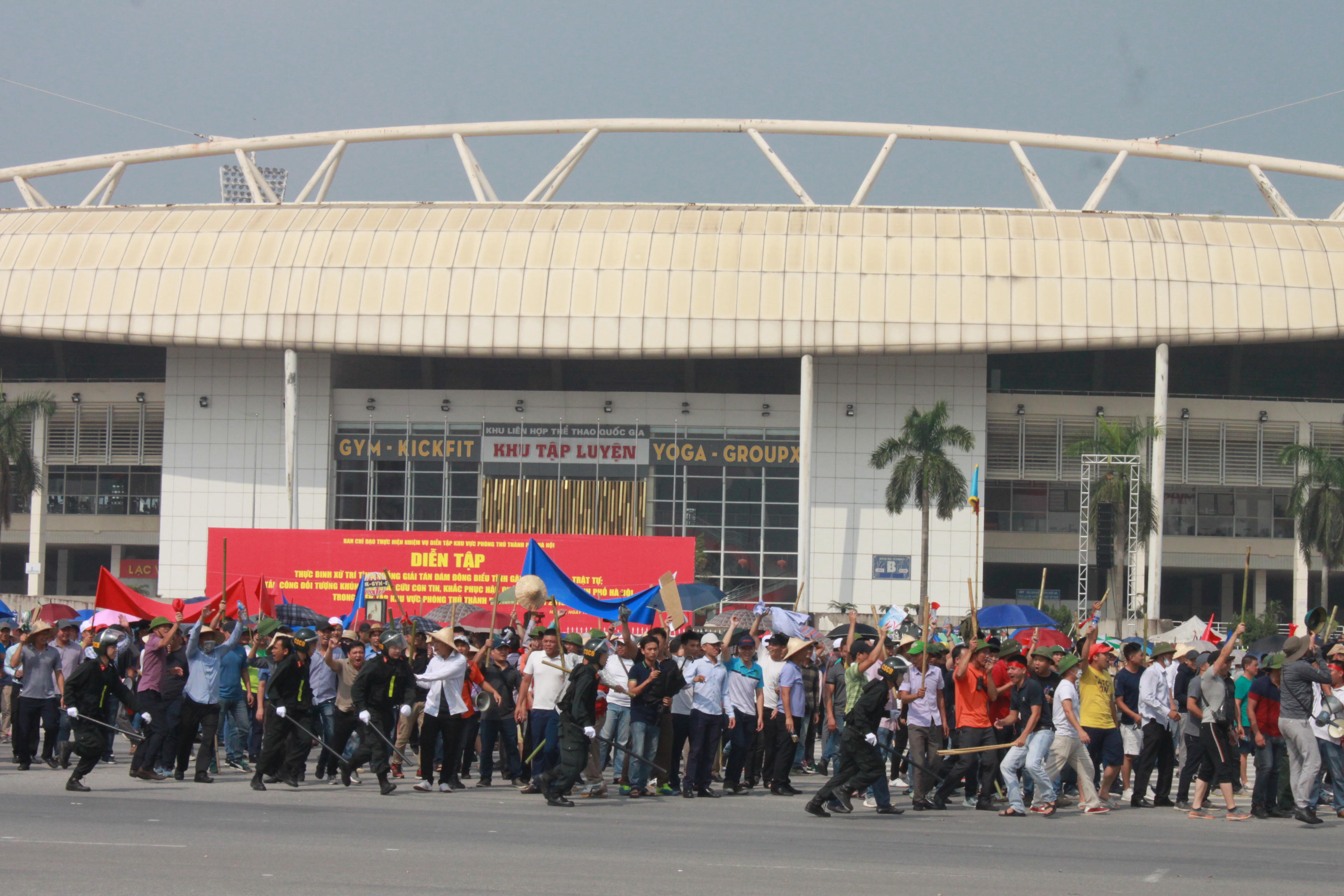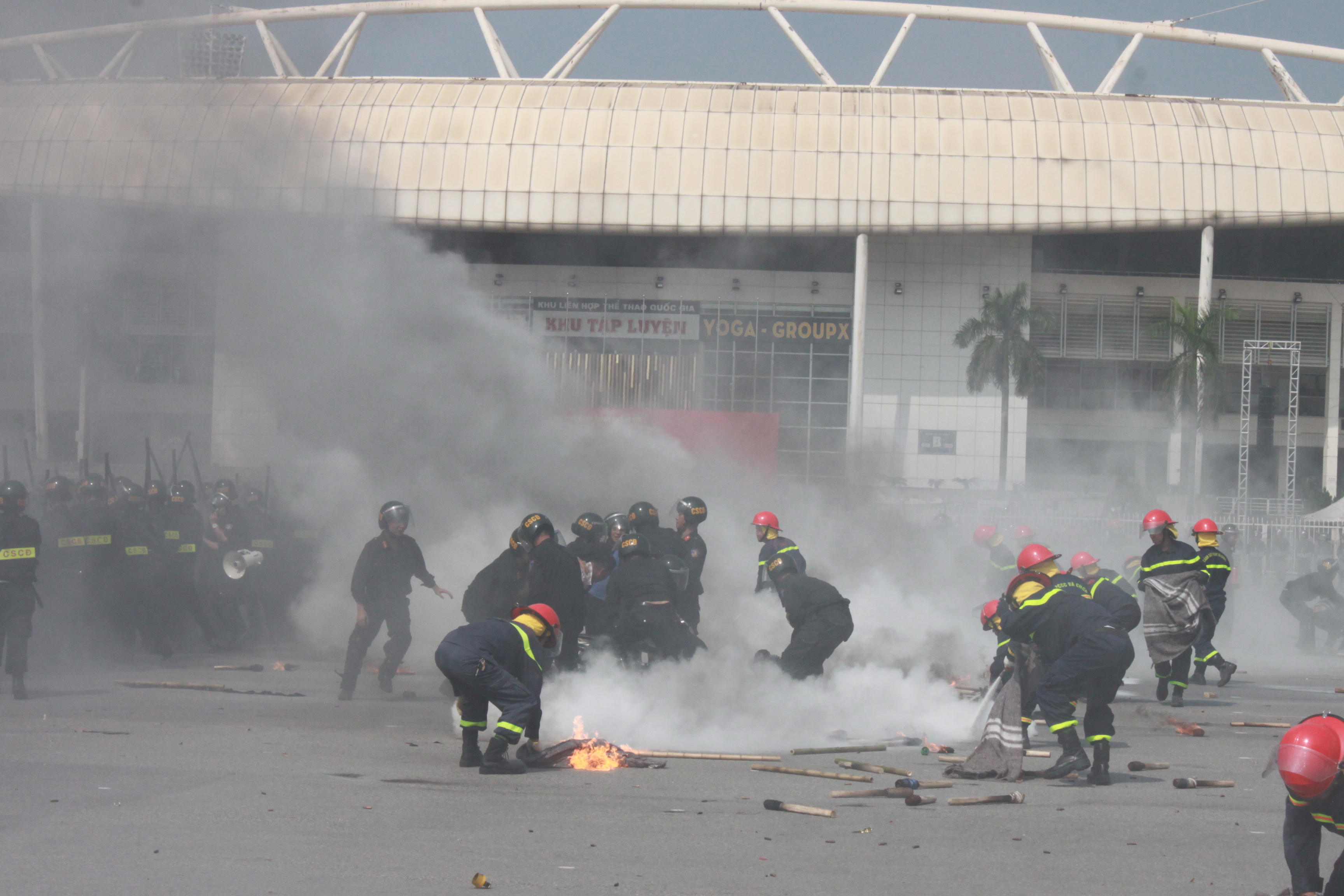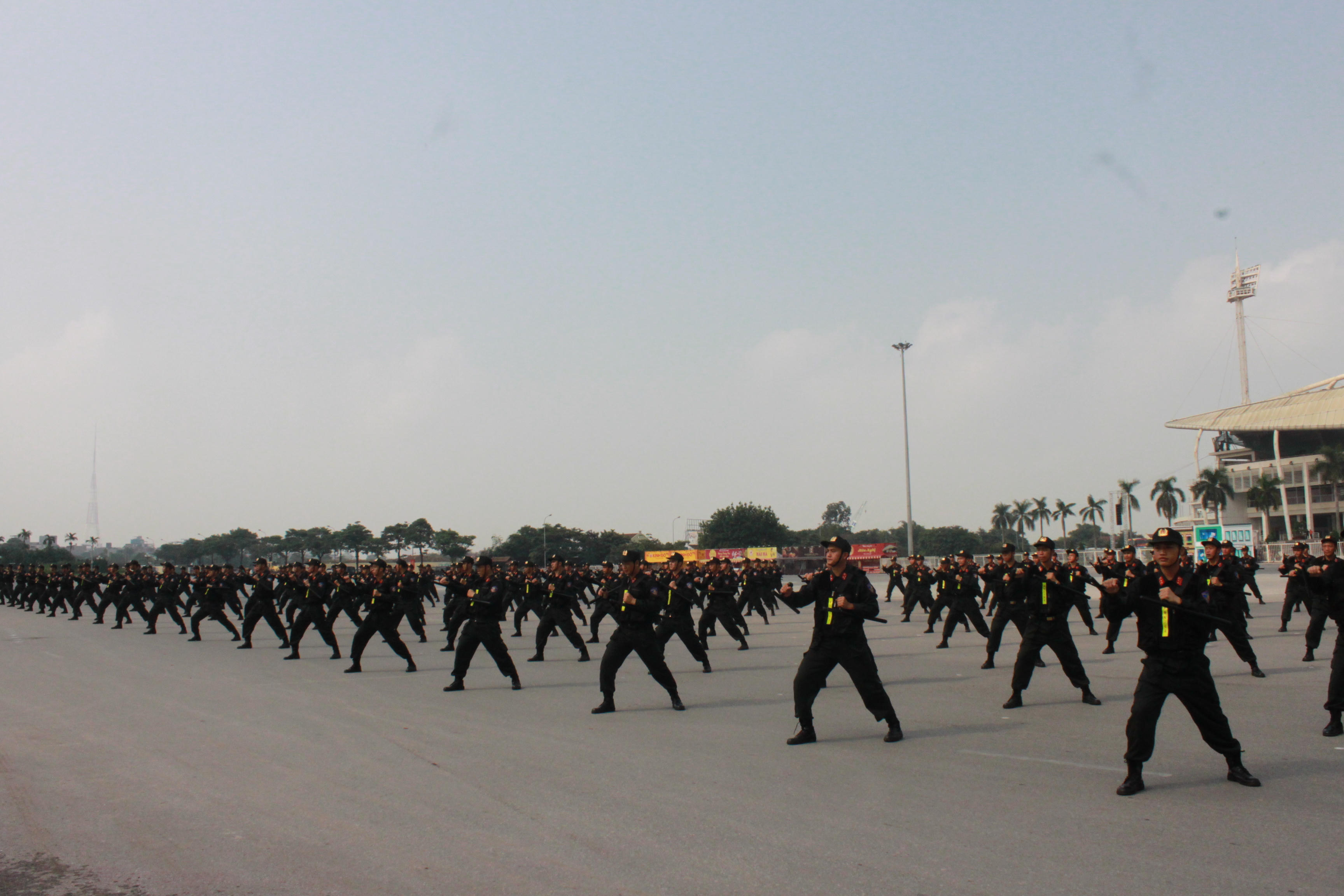 Buổi diễn tập huy động khoảng 6.000 cán bộ, chiến sĩ công an TP Hà Nội và một số đơn vị liên quan với nhiều khí tài hiện đại, thể hiện những màn biểu diễn võ thuật điêu luyện, xử lý các tình huống thực tế dứt khoát, hiệu quả...