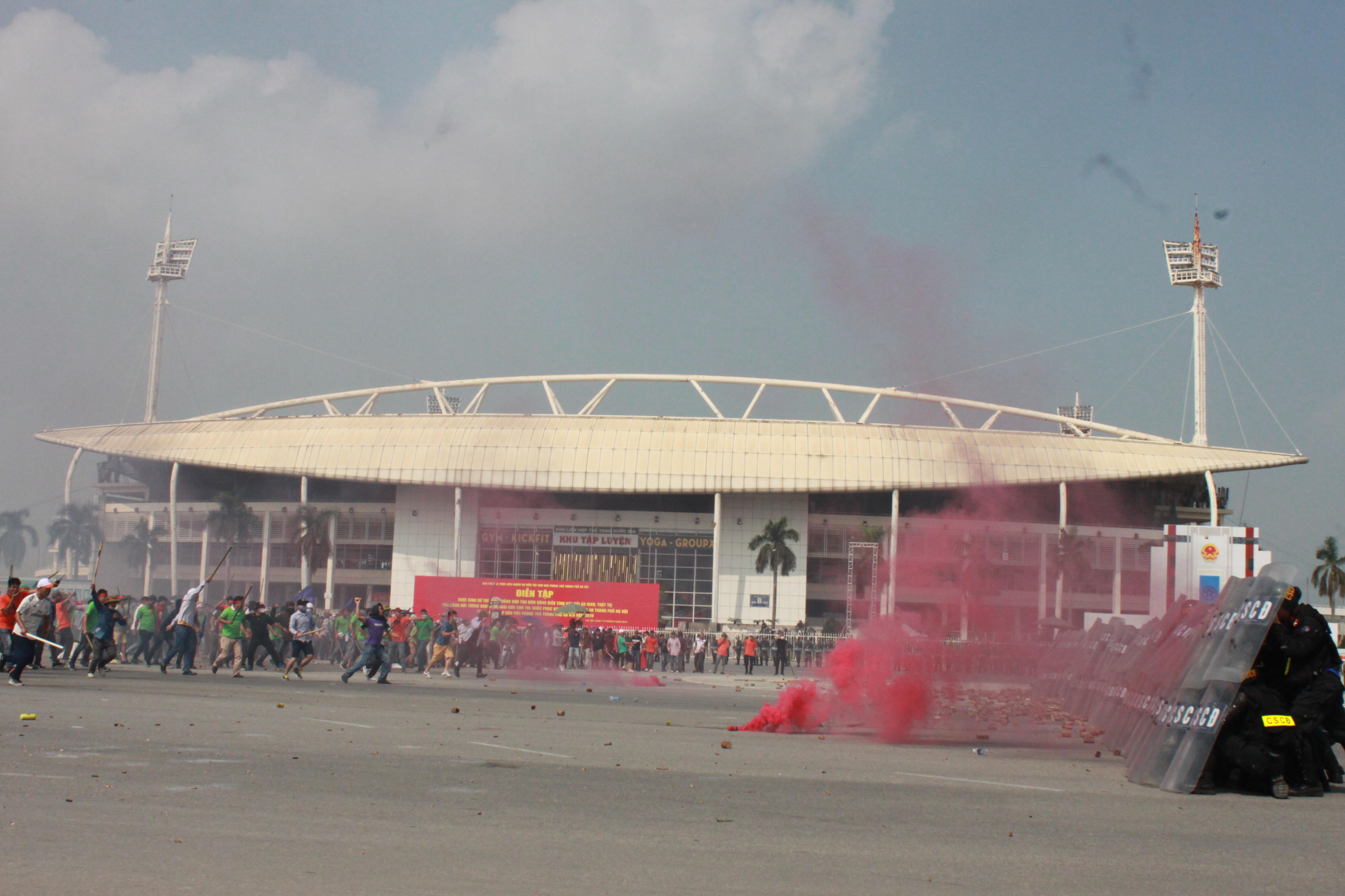 Công an TP Hà Nội phối hợp cùng Bộ Tư lệnh Thủ đô và các sở, ban, ngành liên quan tổ chức buổi diễn tập thực binh xử trí tình huống giải tán đám đông biểu tình, gây rối an ninh trật tự; tấn công đối tượng khủng bố, giải cứu con tin, khắc phục hậu quả trong diễn tập khu vực phòng thủ thành phố Hà Nội năm 2019.