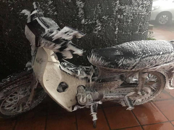 Hình ảnh ô tô, xe máy được tạo hình vô cùng ấn tượng khi bị băng tuyết xâm lấn, phủ dày khiến nhiều người không khỏi ngỡ ngàng.