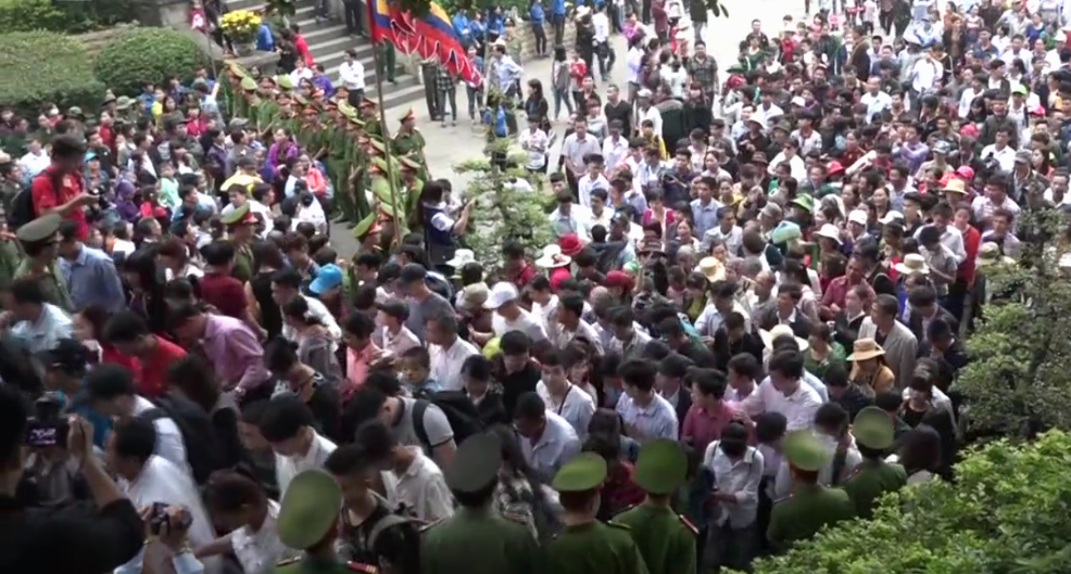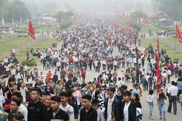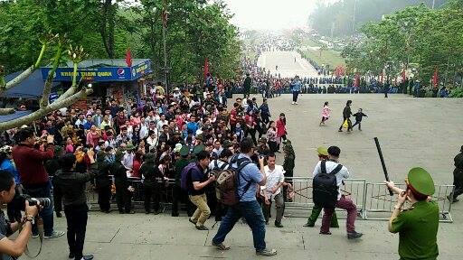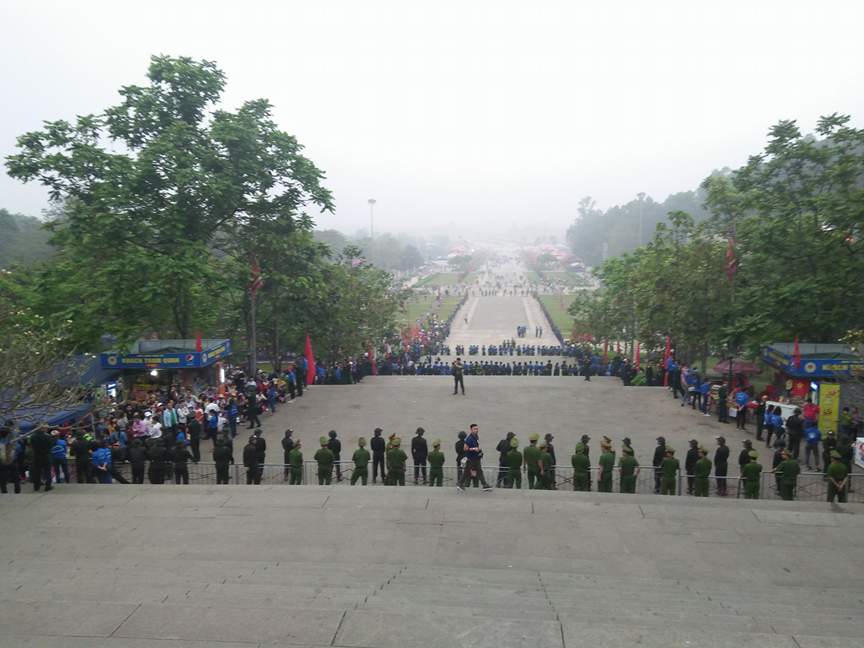 | Khoảng 1.000 chiến sĩ công an được phân công làm nhiệm vụ bảo vệ lễ hội đền Hùng, lập nhiều vòng an ninh, phân luồng từ xa giúp hội đền Hùng tránh tình trạng chen lấn, xô đẩy nhau như năm 2016. |