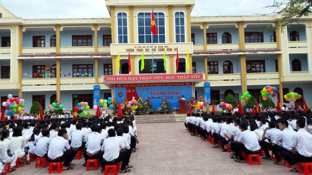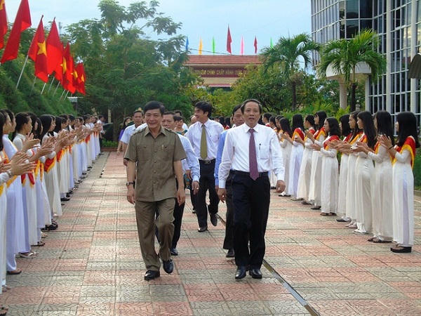 Quảng Bình: Lễ khai giảng diễn ra trong không khí vui tươi, phấn khởi, hứa hẹn sẽ đạt được nhiều thành tích trong công tác dạy và học. Trong không khí của ngày tựu trường, ông Trương Minh Tuấn, Bộ trưởng Bộ Thông Tin và Truyền thông đã đến dự lễ khai giảng cùng thầy và trò nhà trường THPT TP Đồng Hới, tỉnh Quảng Bình.