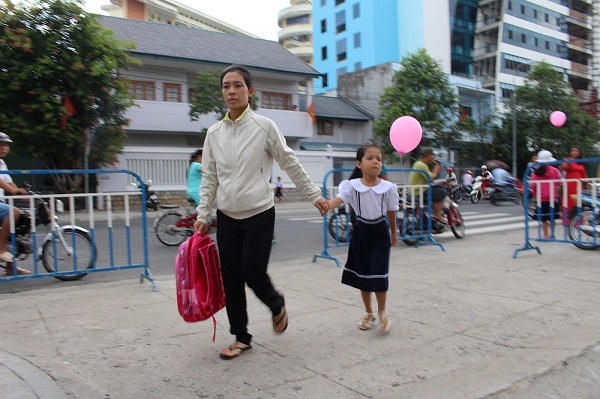 TP.HCM: trong thời tiết khá oi bức, hàng nghìn phụ huynh và học sinh TP HCM đã tranh thủ đến trường dự lễ khai giảng. Nhiều ngả đường đổ về các trường khá thông thoáng, không xảy ra ùn ứ.