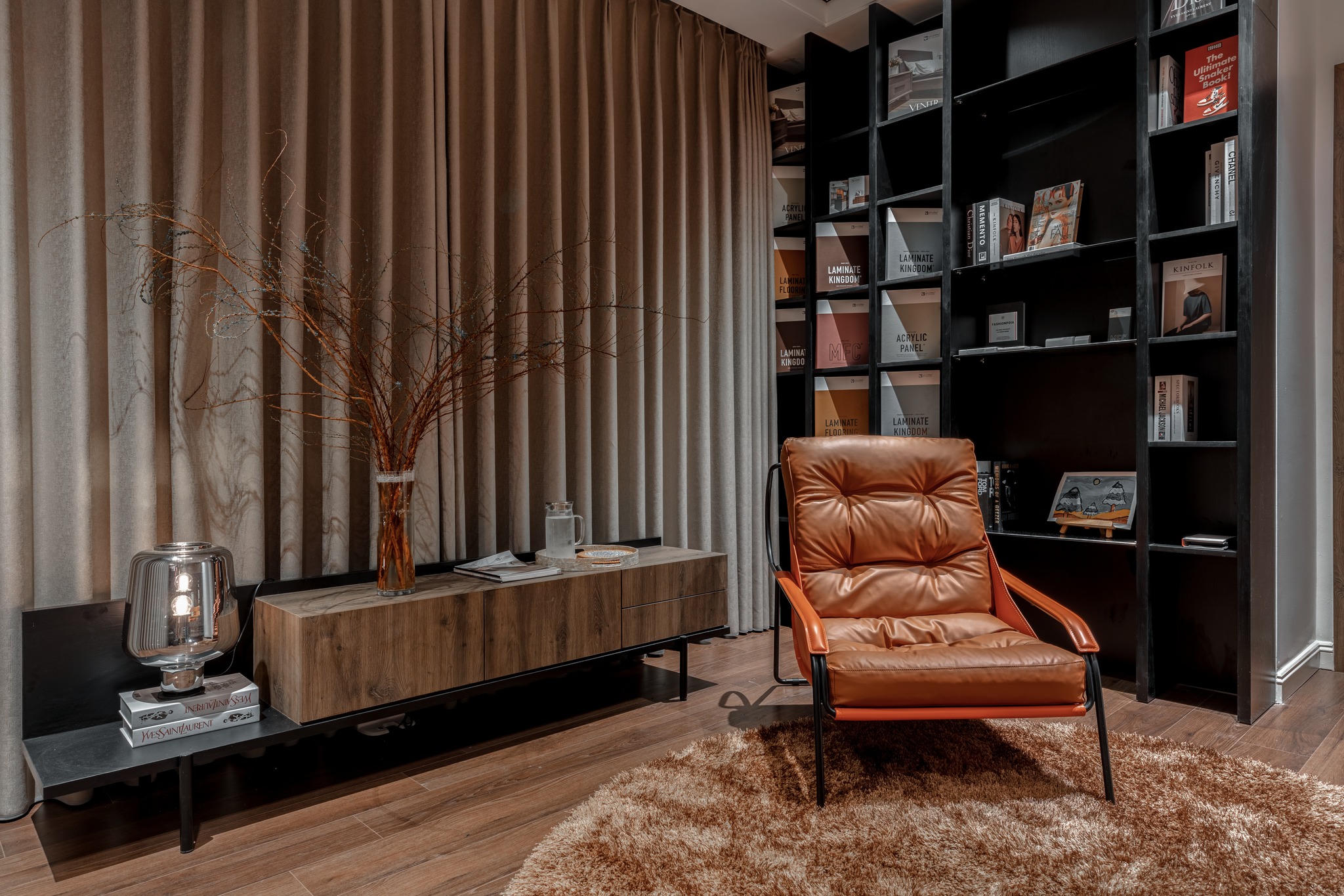 Điểm nhấn và giá sách và chiếc ghế để gia chủ có thỏa thích niềm đam mê chụp ảnh. |