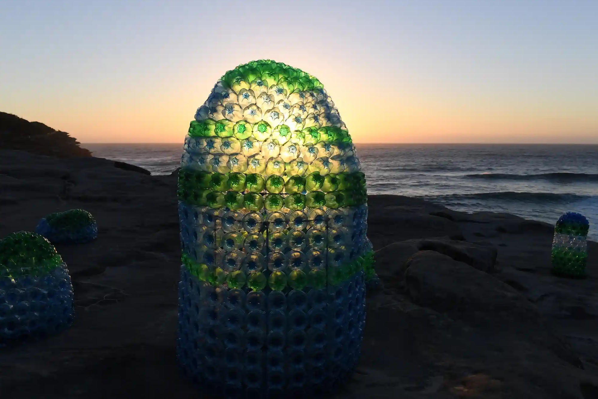 Tác phẩm “Thiên đường nhựa” của nghệ sĩ người Úc Kathy Allam là một phần của triển lãm "Điêu khắc bên biển" dọc bãi biển Bondi ở Sydney vào năm 2017. Ảnh: Dean Lewins/AAP.