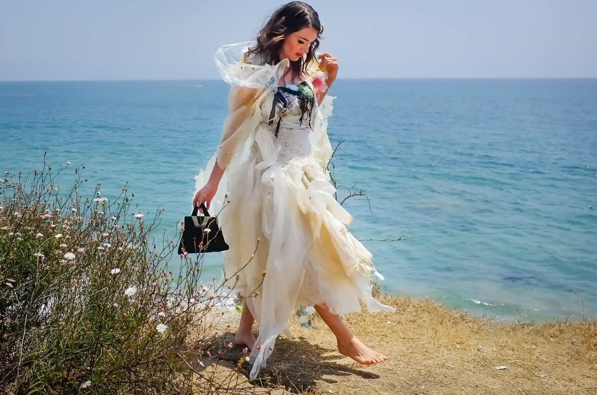 Người mẫu mặc trang phục của nghệ sĩ người Úc Marina DeBries để thu hút sự chú ý về ô nhiễm biển. Ảnh: Monching Flores.