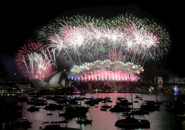 | Màn bắn pháo hoa sớm nhất thế giới (trước 3 tiếng đồng hồ) tại Sydney. Ảnh: Reuters |