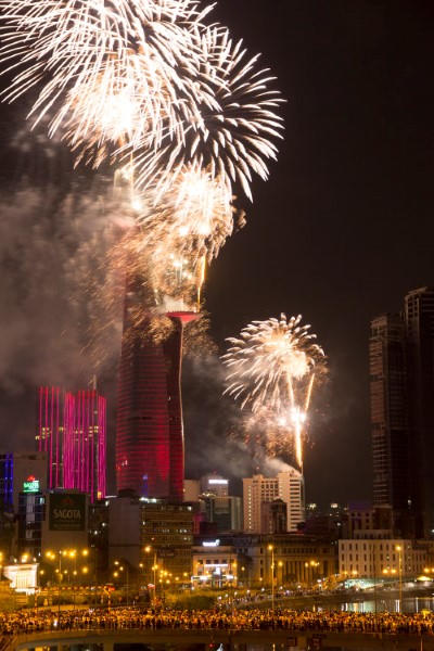 | Pháo nở hoa trên các cao ốc TP HCM, Việt Nam. Ảnh: VietNamNet. |