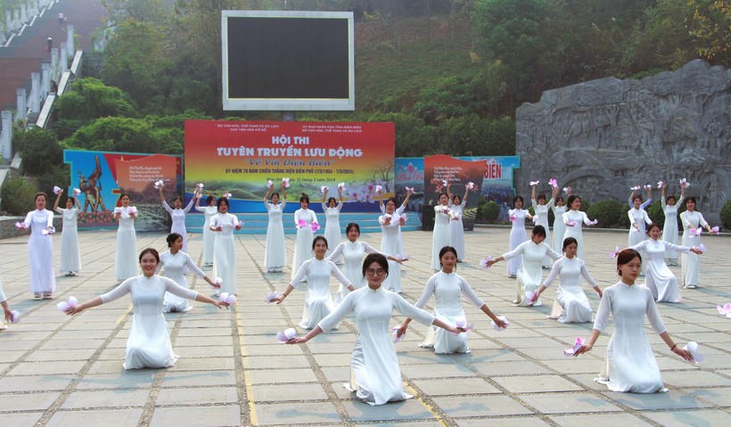 Màn biểu diễn của học sinh tại khu vực Tượng đài Chiến thắng Điện Biên Phủ. |