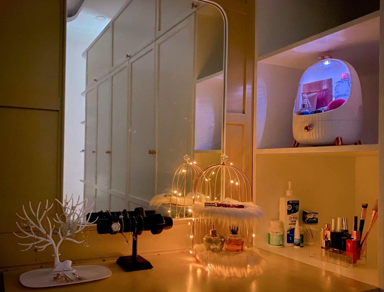 Bàn trang điểm lung linh vào ban đêm.