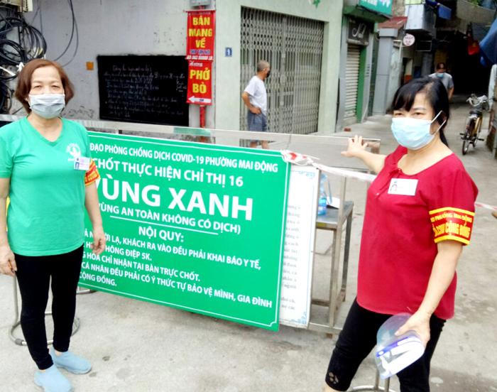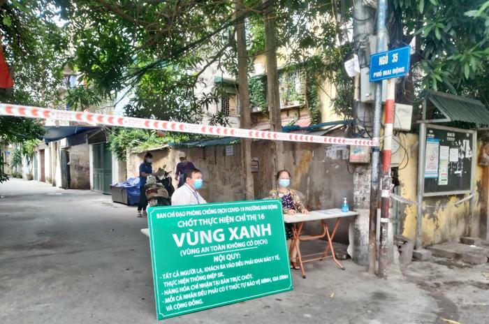 30 "Vùng xanh an toàn" được triển khai tại các khu dân cư, tổ dân phố, các ngõ chưa có dịch Covid-19 trên địa bàn phường Mai Động, quận Hoàng Mai, từ ngày 1/8.