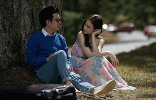 Angela Phương Trinh (phải) và Trường Giang có nhiều cảnh diễn lãng mạn trong phim mới của Đức Thịnh.
